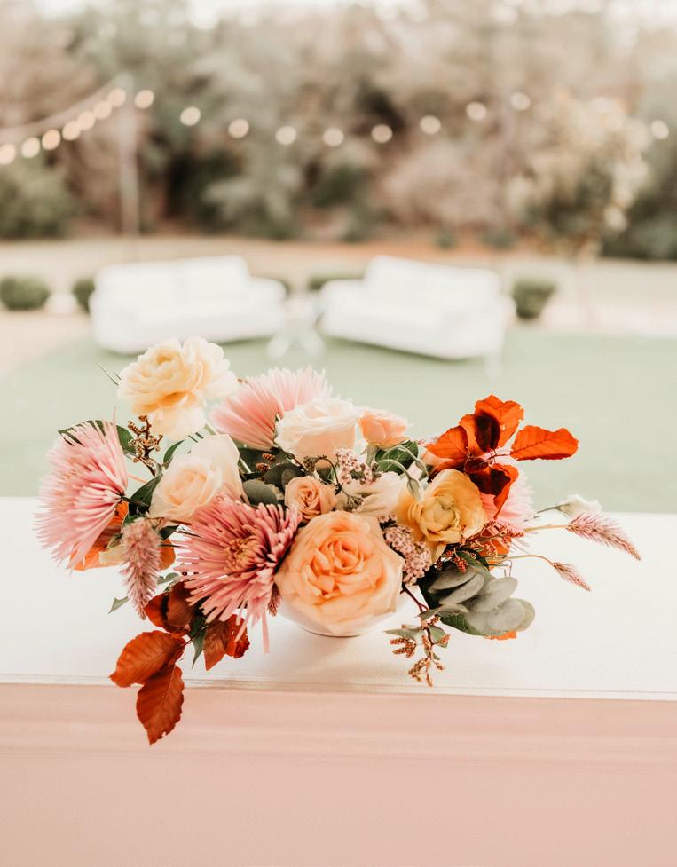 Wolfe Florist designed a bold floral moment by incorporating a vibrant palette with pops of pink and orange to create the perfect garden escape.