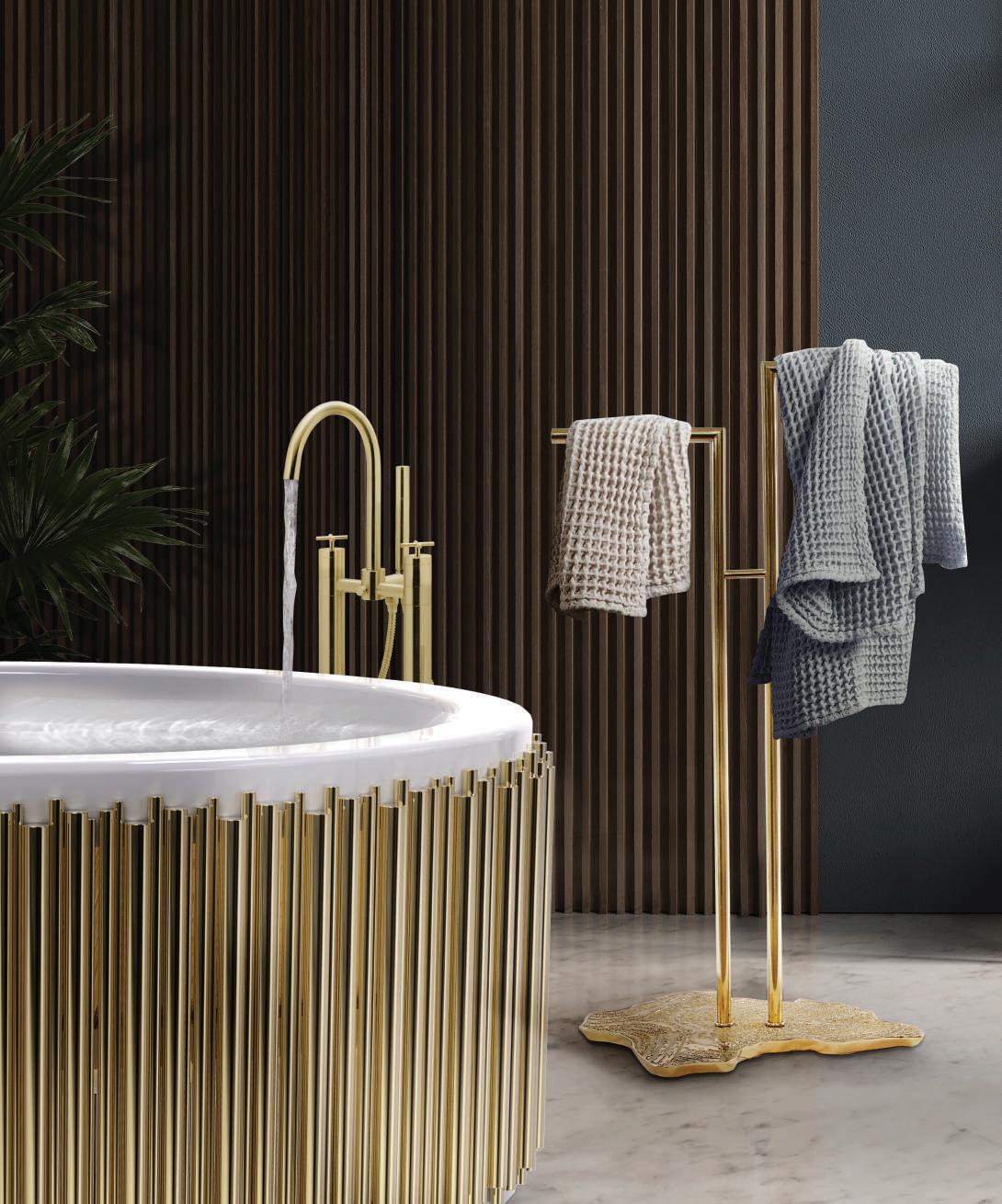 “The Newton Towel Rack is a three-tier towel rack produced in polished brass and supported by gold and black spheres. It is a revolutionary statement piece created to fulfill the needs of those who are looking for the best in contemporary furniture design mixed with exquisite details and high-quality materials. A true enhancement of your bathroom decor.