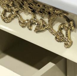Structure: Glossy White-Cream Lacquered Wood | Knitting Polished Brass Details; Top: Estremoz Marble; Feet: French Style Polished Brass, High Gloss Varnish; Sink: Polished Brass, High Gloss Varnish; Water drainage: Wall.