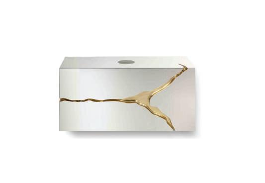 Lapiaz Bathtub is inspired in the typical karst formations produced by the dissolution of limestone rocks. This unique bathtub enhances glamorous and rich interiors with a gold-painted tear that contrast with the mirrored effect of the stainless steel. Definitely, a statement bathtub that stands out in any contemporary bathroom project.