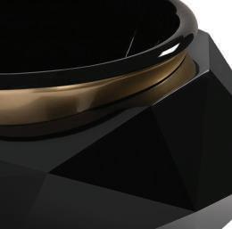 The Diamond freestanding turns heads wherever it stands. It features a wooden structure finished in a high gloss black varnish, a color that contrasts perfectly with the interior, covered in gold leaf. Besides its irregular shape, it has a built-in oval sink glass with a translucent black finishing that will enhance any bathroom design.