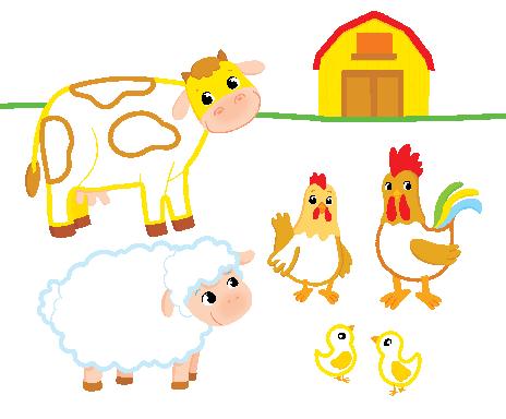 • Horse, sheep, pig, cow, rooster hen, chick, duck, parrot, lion, dog, monkey, tiger, zebra, turtle, cat, owl, giraffe, snake, snail, croccodile, elephant