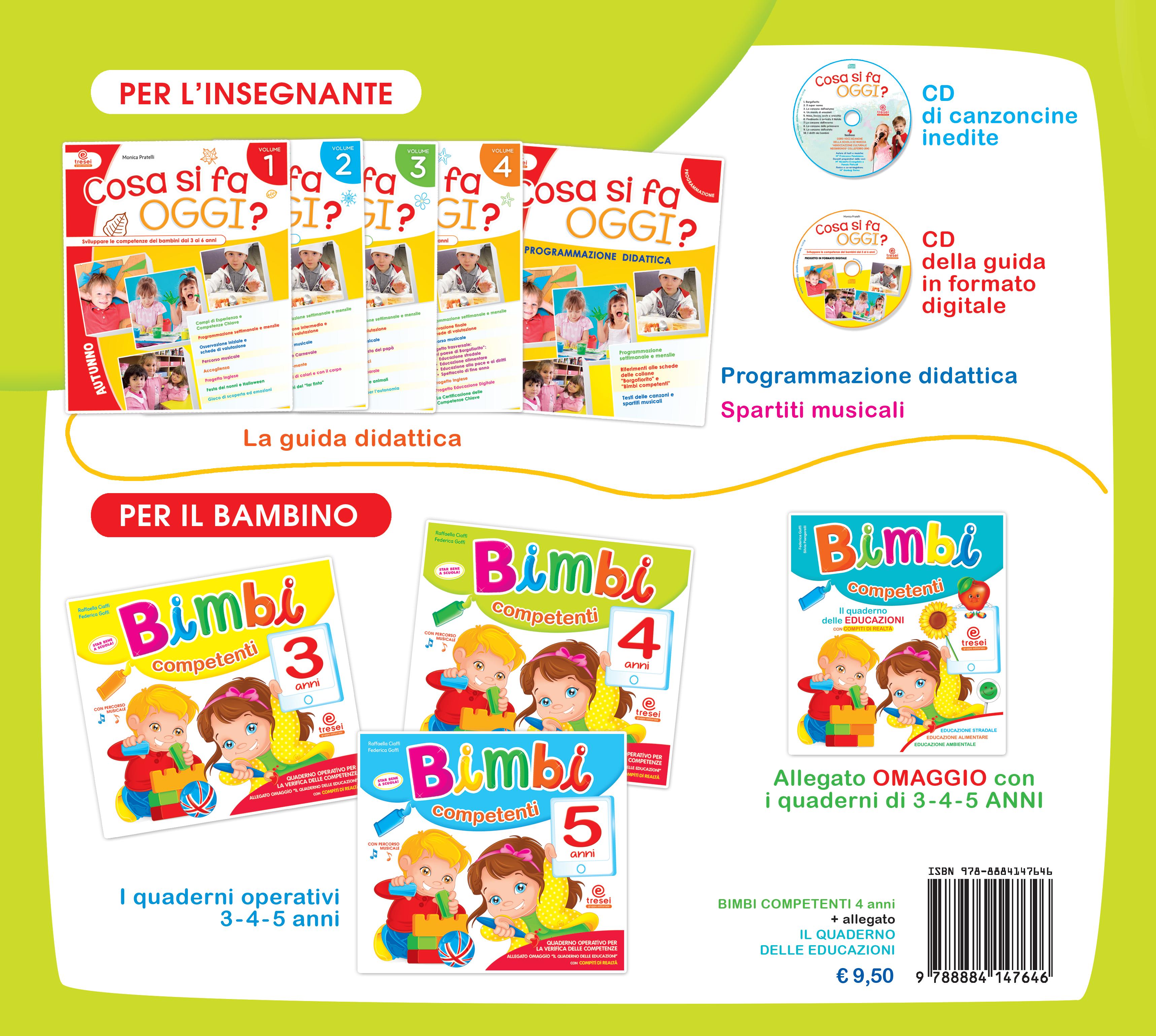 I quaderni operativi “Bimbi competenti” offrono al bambino un percorso didattico che lo accompagna nella crescita e maturazione personale e nell’acqusizione delle competenze commisurate alla propria fascia d’età. Sviluppare le competenze per l’alunno significa “mettere alla prova” le conoscenze e le abilità acquisite, rielaborarle in modo del tutto personale, adattandole al contesto in cui si trova ad operare. Nel percorso del quaderno operativo, prendiamo come riferimento il quadro europeo delle competenze che, nonostante siano strettamente correlate tra loro, possono essere collegate a uno o più campi d’esperienza previsti dalle Indicazioninazionaliperilcurricolo.