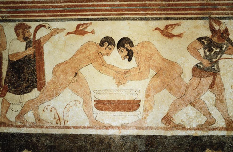 I lottatori della Tomba degli Àuguri del 540-520 a.C. Ritrovato a Tarquinia. Quali
