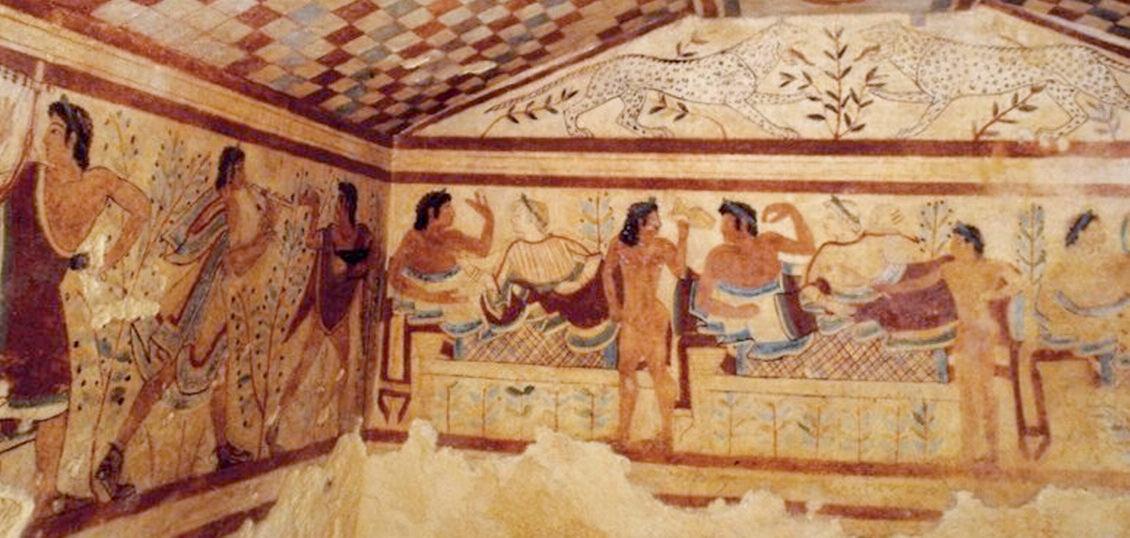 Affresco della Tomba dei Leopardi del 473 a.C. Ritrovato a Tarquinia.