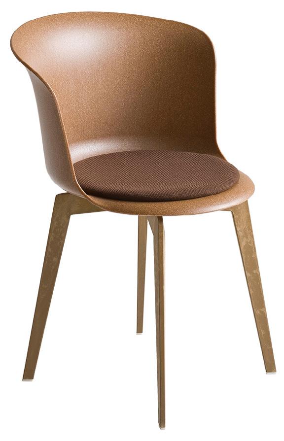 Esta silla está hecha íntegramente de "Compound wood", un material de plástico reciclado derivado de una mezcla de madera y desechos de procesamiento. Un material ecológico, que tiene como principio el respeto por el medio ambiente. El asiento acolchado está disponible con varios tapizados.