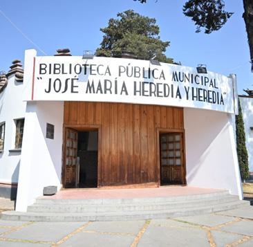 El emblemático edificio ubicado en la convergencia de las avenidas Hidalgo y Morelos ha tenido dos vidas, pues fungió durante más de 40 años como el Museo de Artes Populares y Pabellón de Turismo del Estado de México, y desde 1987 como la biblioteca José María Heredia y Heredia y fue diseñado por el arquitecto Hermodio de Valle Arizpe. Como Biblioteca tiene un acervo de doce mil ejemplares.