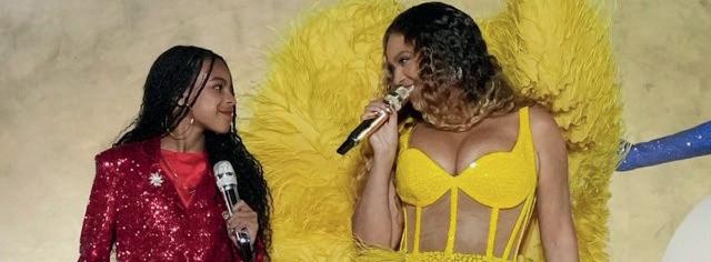 Blue Ivy, pequeña hija de Beyoncé de tan solo 11 años subió al escenario y demostró el talento que heredó de la madre, al bailar con ella 2 de sus más grandes éxitos frente al estadio repleto de fanáticos. Con un look completo en color rojo Blue brilló en el escenario.