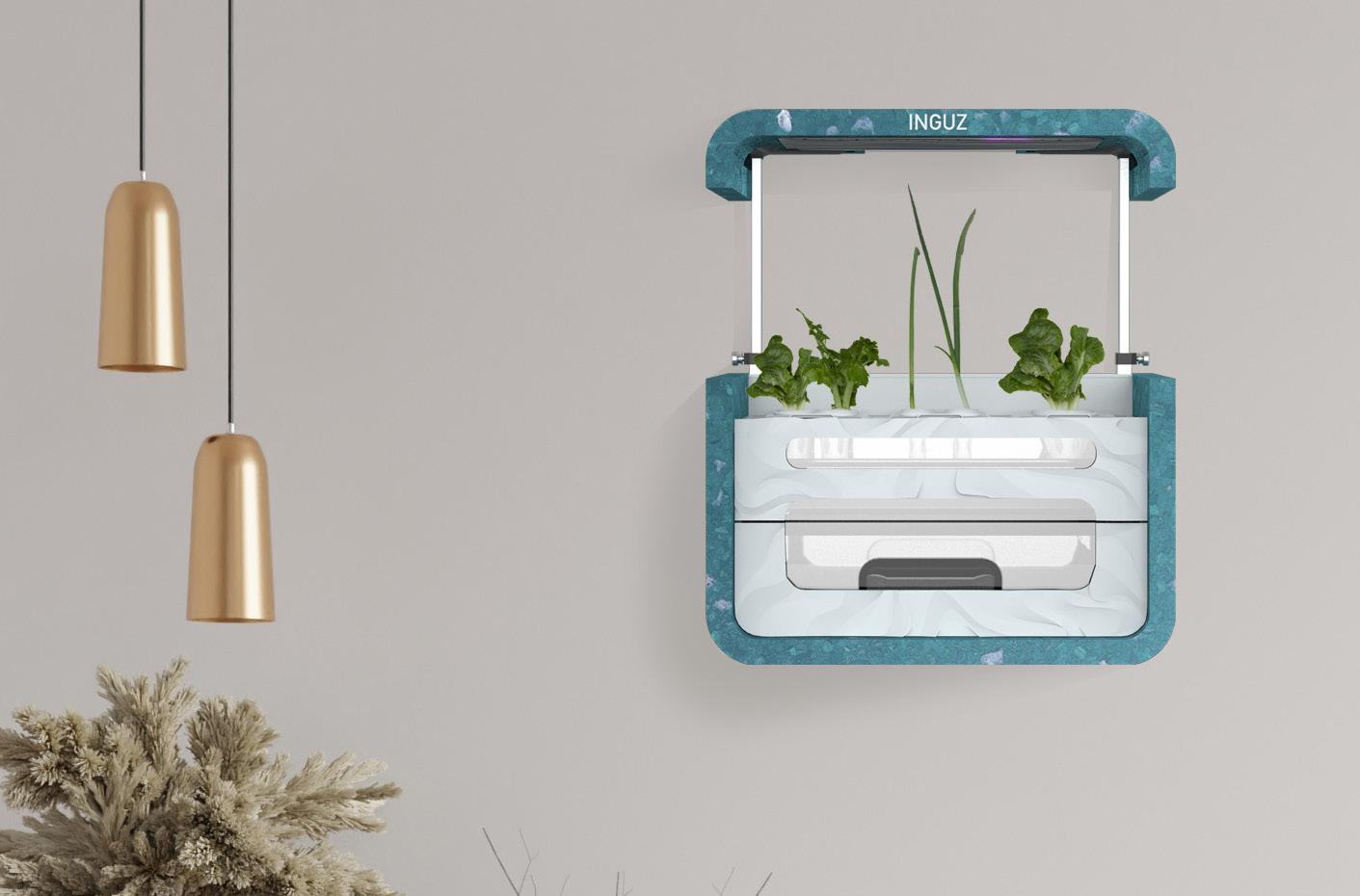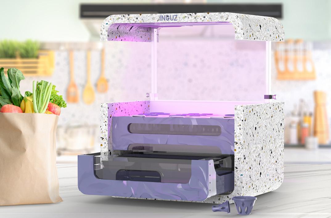 INGUZ is a hydroponic system designed to re-grow the leftover root sections from your vegetable waste.