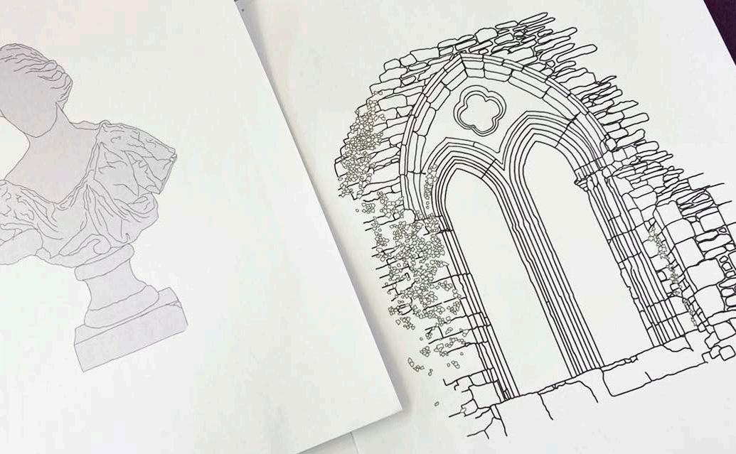 Alanis’s project is focussed on her natural and architectural surroundings. She seeks to combine nature with architectural elements, forms, and ornamentation. By looking back through historical eras, where pattern and ornament has been created for interiors, Alanis has taken inspiration from architectural antiques like gates and frames to include within her decorative designs for wallpaper and fabric collections.