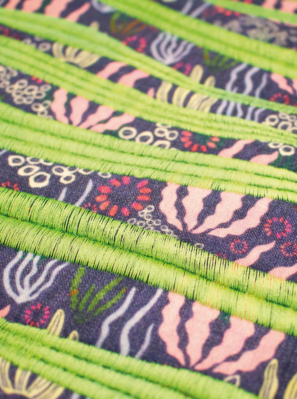 During her degree Kiah has been influenced by the surrounding environment both visually and materially to bring inspiration and creativity to her projects. Whilst adopting a direct approach of image making through digital drawing, she enhances her designs through exploring practical processes. Having been drawn to the practical side of surface pattern Kiah intends on continuing her curiosity of surface innovations as a graduate and beyond.