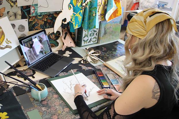 Her key goal is to dive into a future of sustainable practice through means of craftivism; to open opportunities to aspiring designers through showcasing personal experiences and discoveries on a range of textiles and interior surfaces. Her works to date embody detailed illustrations of gardens, heritage sites, wildlife and family history - commonly inspired by conserving memories - with use of her skills in mixed, traditional media and digital painting. Key outcomes showcased in her portfolio include wallpapers and accessories, with an aim to bring functionality and accessibility into ordinarily conceived products.