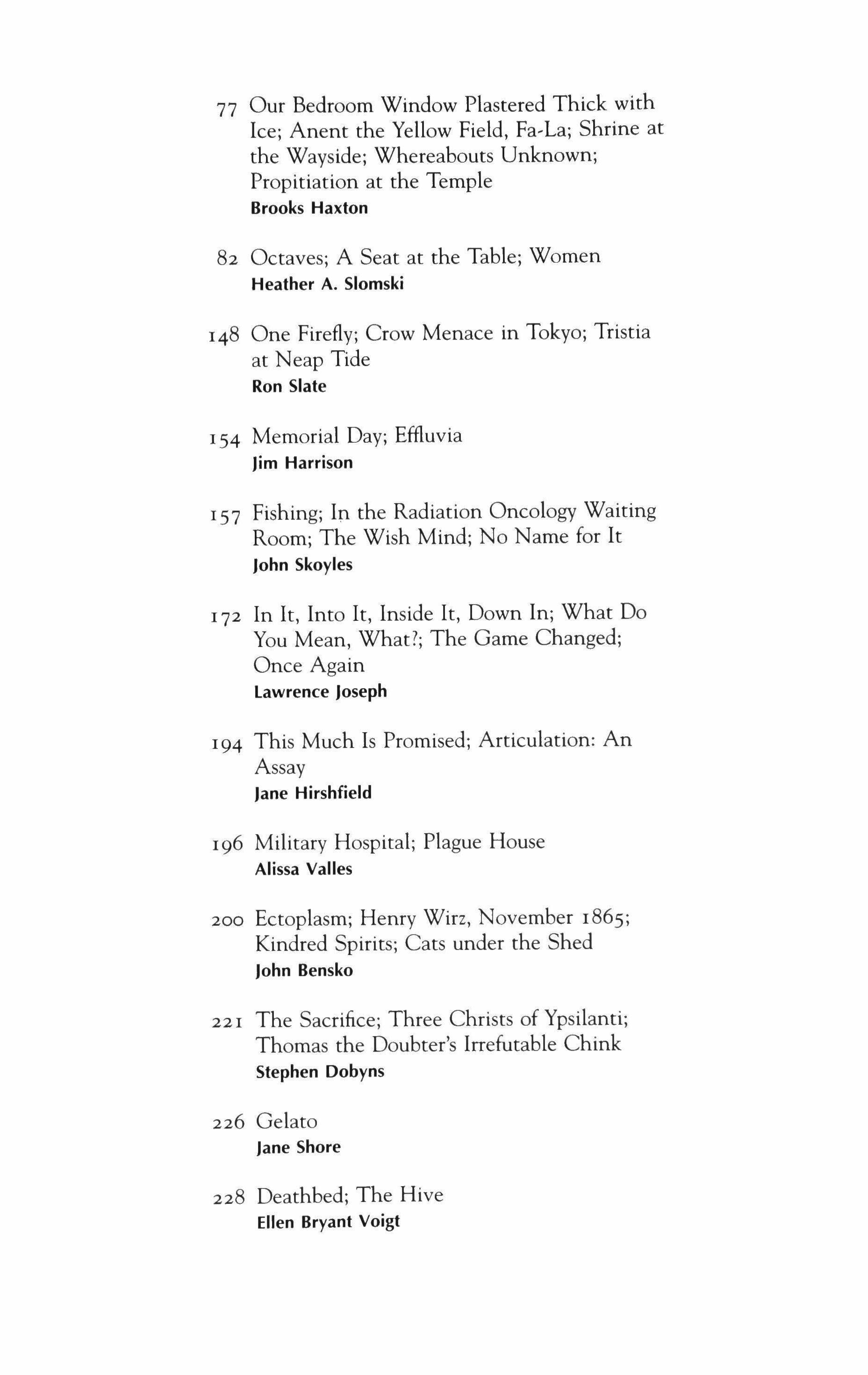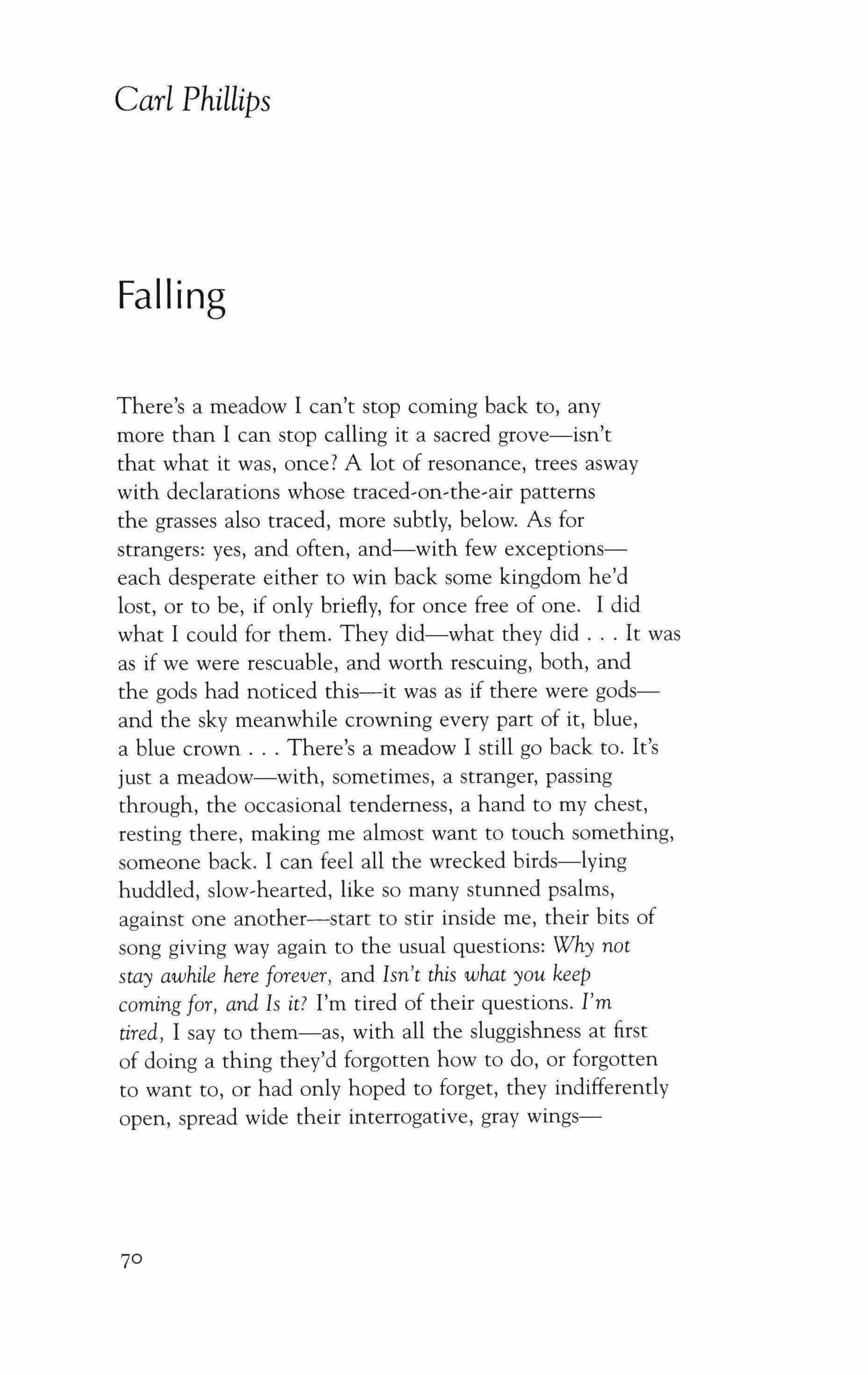 53 A Few Encounters with My Face Edward Hirsch 55 Cake Mark Strand 56 Say My Name John Rybicki 57 Hotel Bed Courtney Angela Brkic 68 Confiscate; Snuff Louise Mathias 70 Falling; Southern Cross Carl Phillips 72 Vademecum; Visitation; Visual Binary Doreen Gildroy