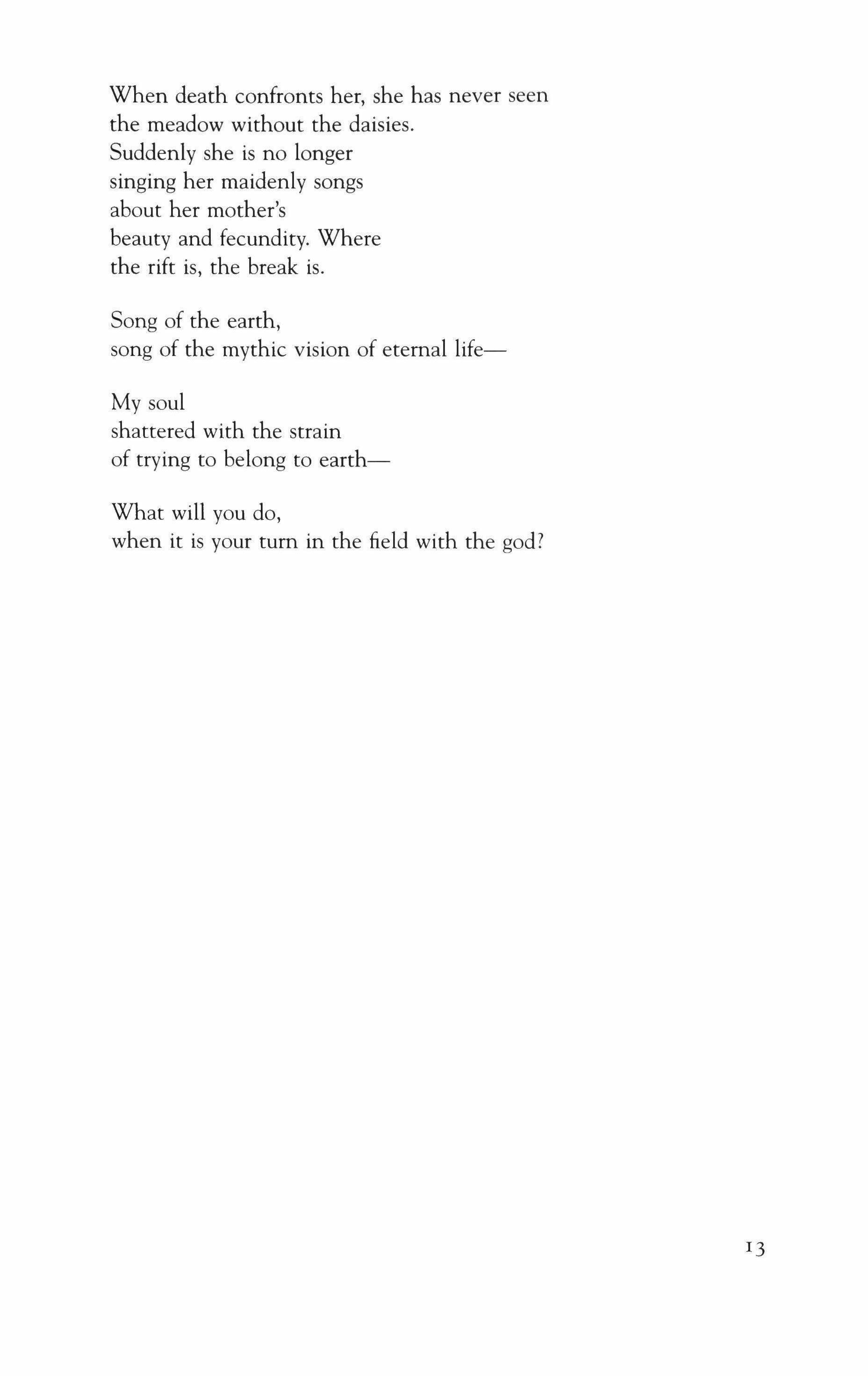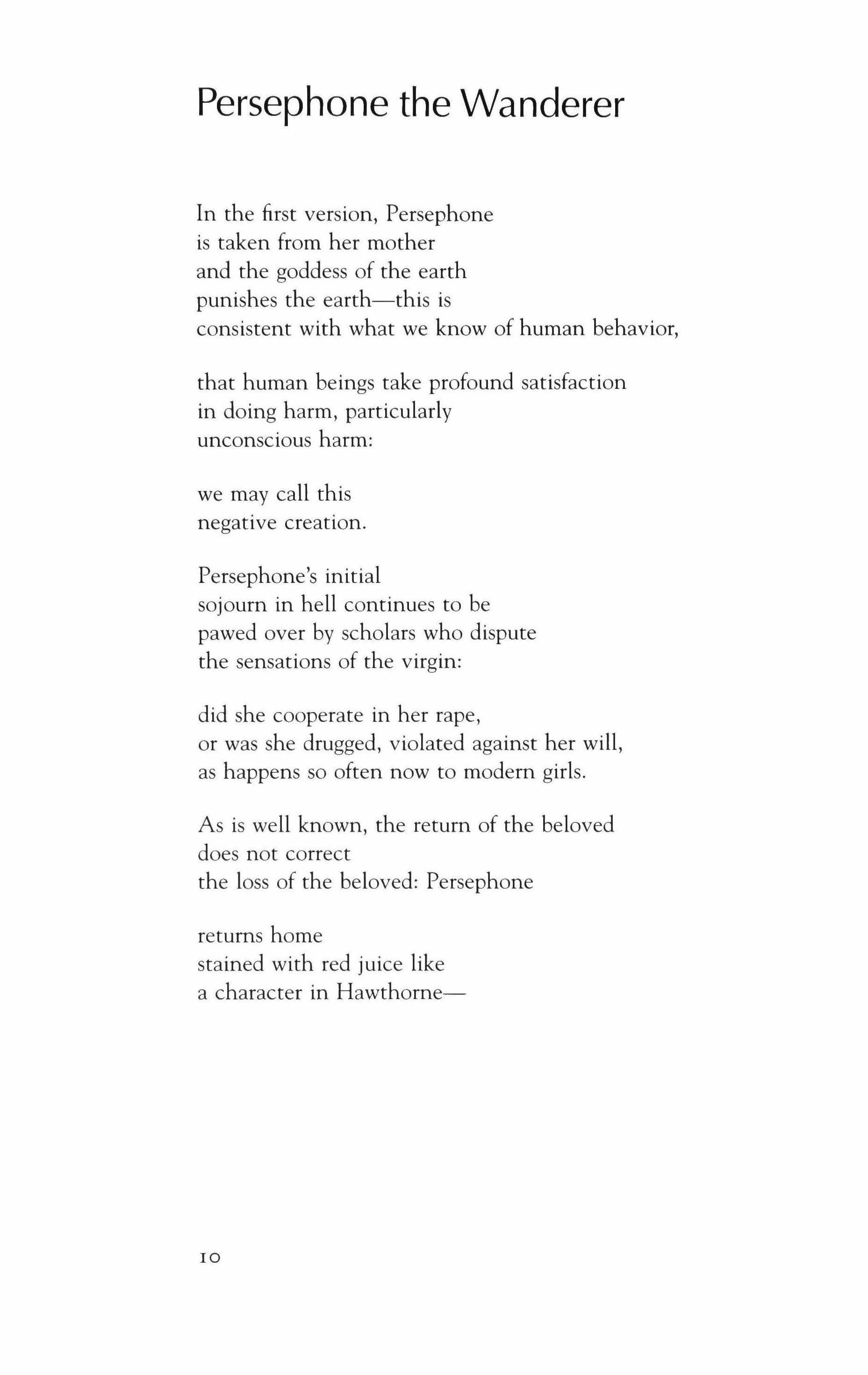 CONTENTS poems 9 Thrush; Persephone the Wanderer; Persephone the Wanderer