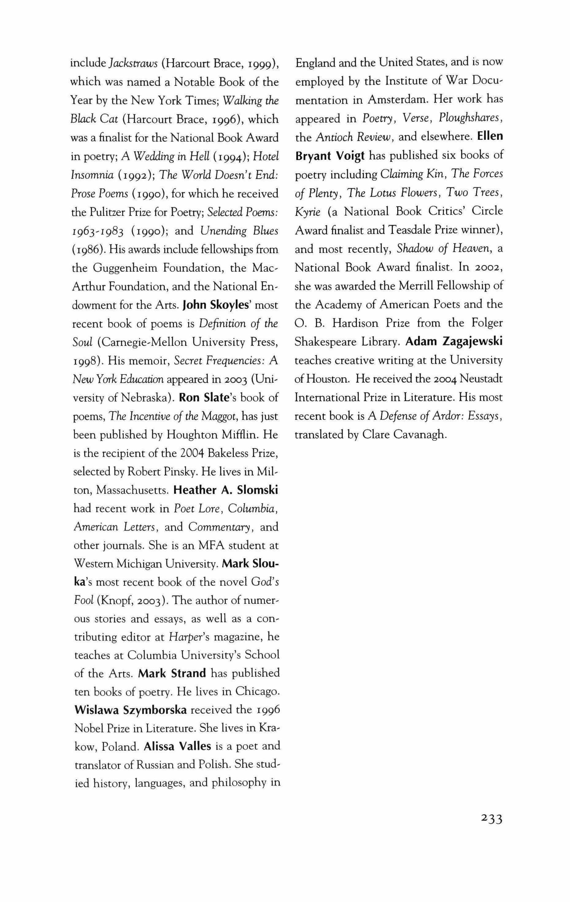 Translated from the Polish by Clare Cavanagh, Alissa Valles