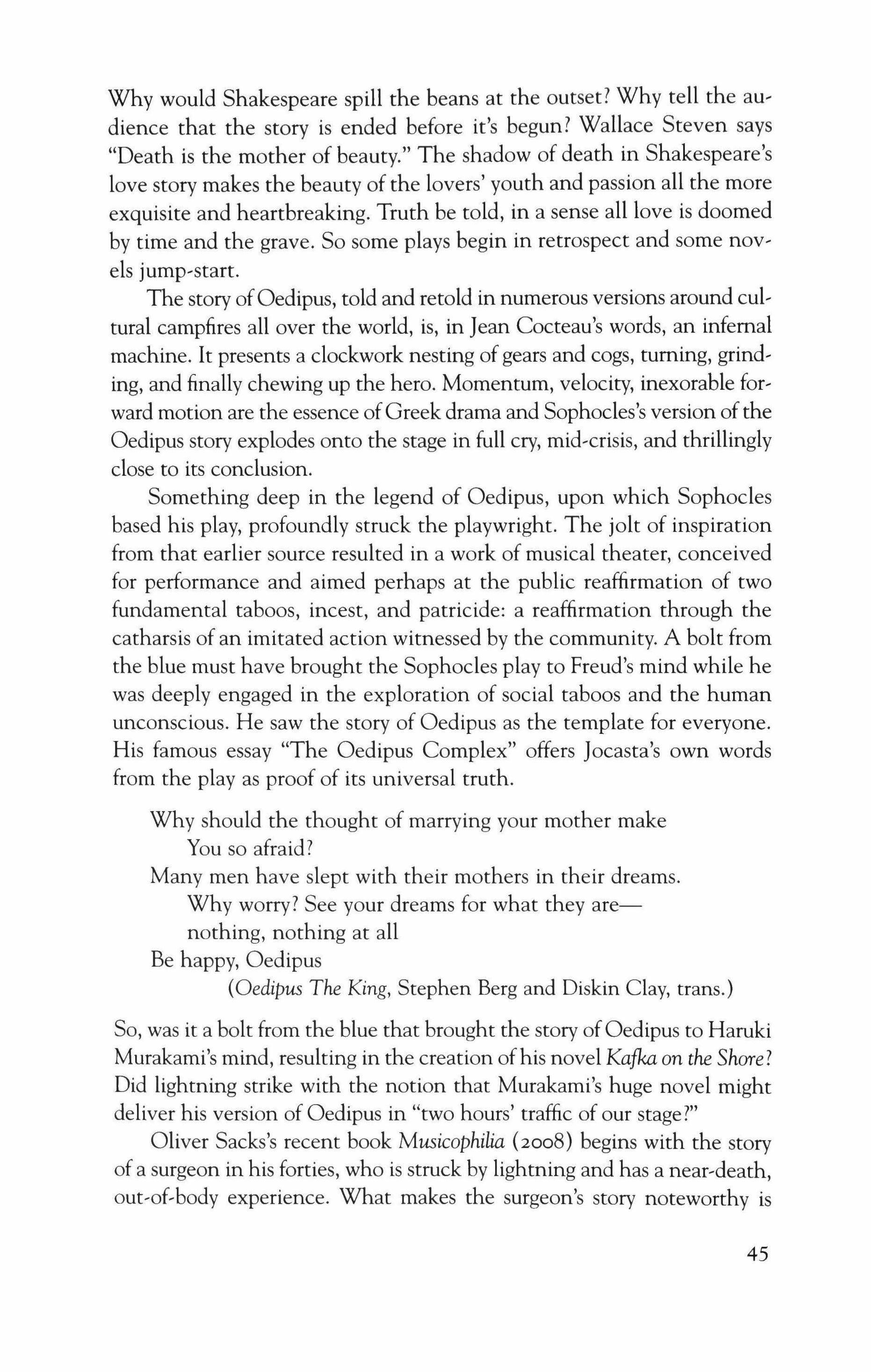 And the luck of it, the circumstances-there was the time to do it, when it could happen-and who recognizes that, who promotes it, the connections. What if your first novel was published on the day of Pearl Harbor, as was Saul Bellow's Dangling Man? Why was everyone crying at Mary Zimmerman's Metamorphoses in New York after 9/1 I? Since we can't even begin address those realities, let's talk about what we can