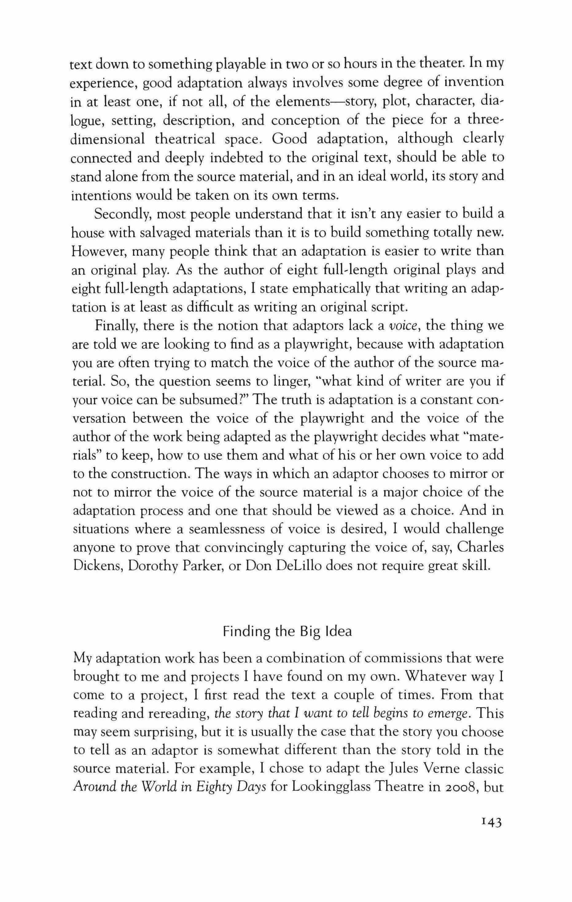 142 "Written by Adapted from _" Adaptation and the Voice of the Playwright
