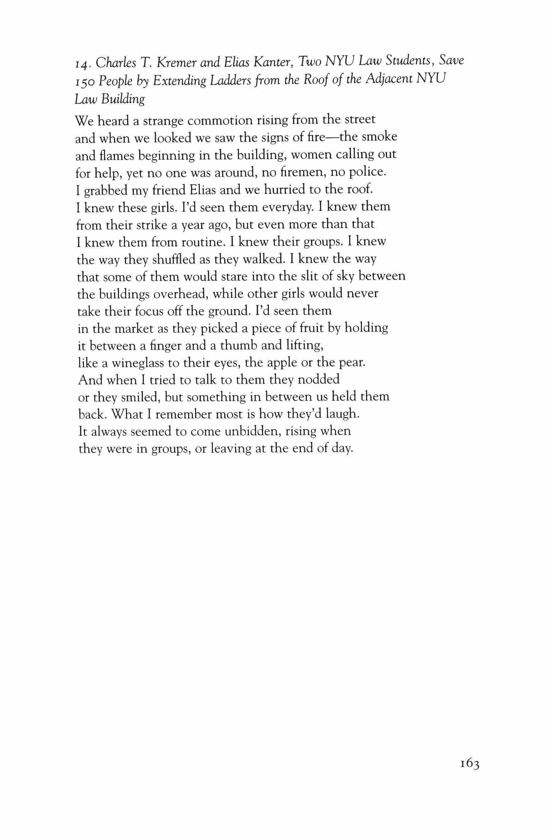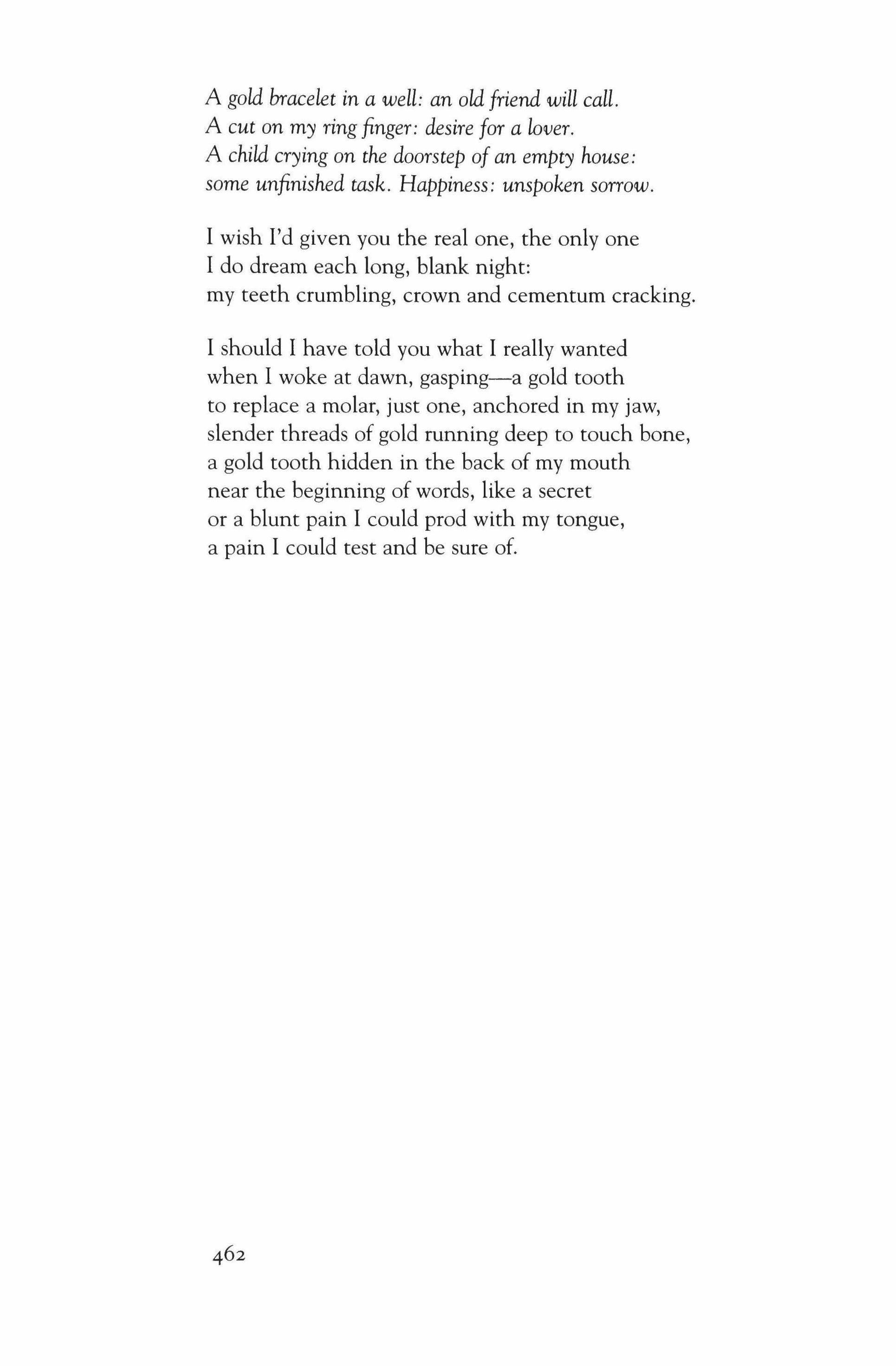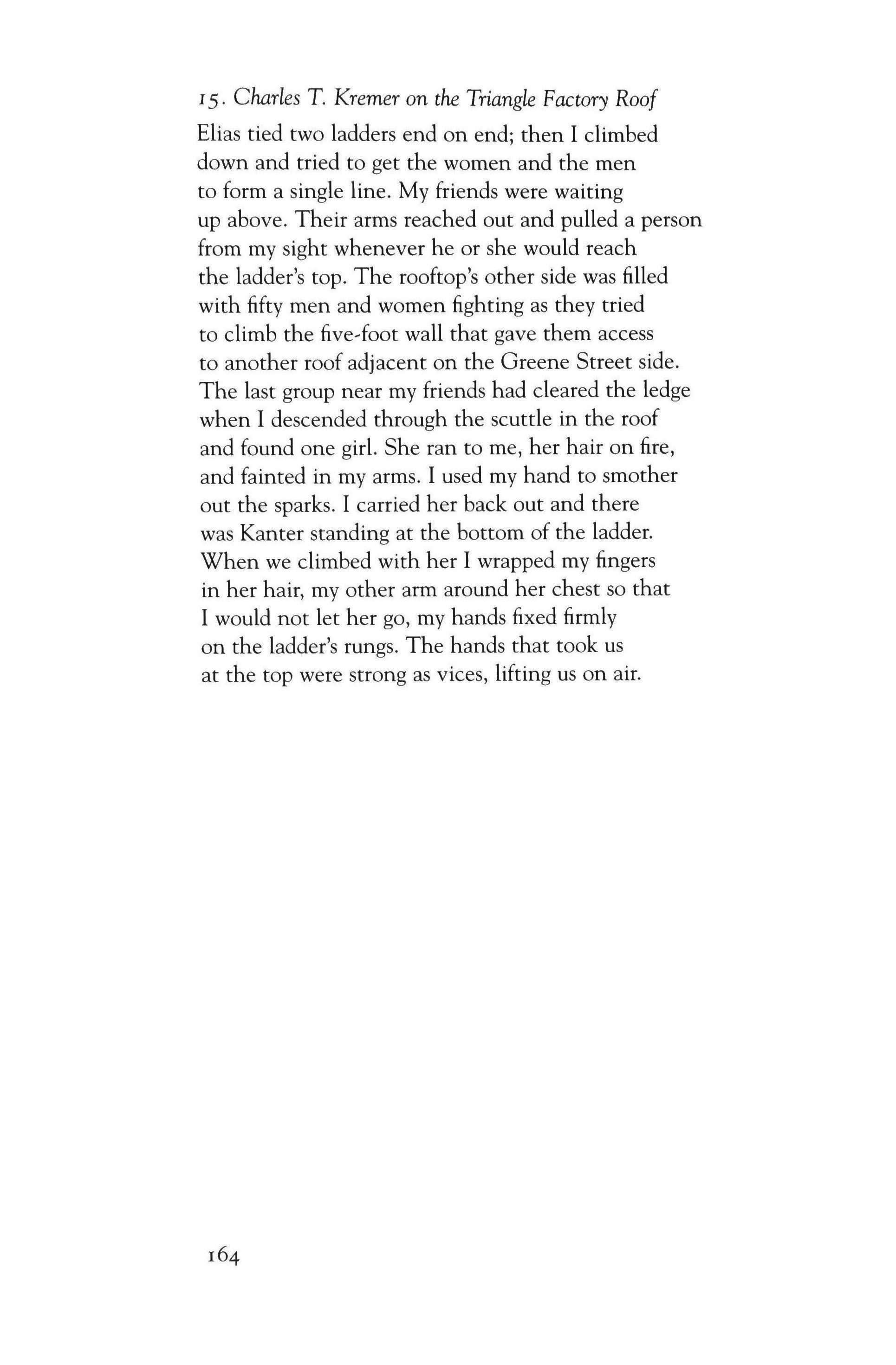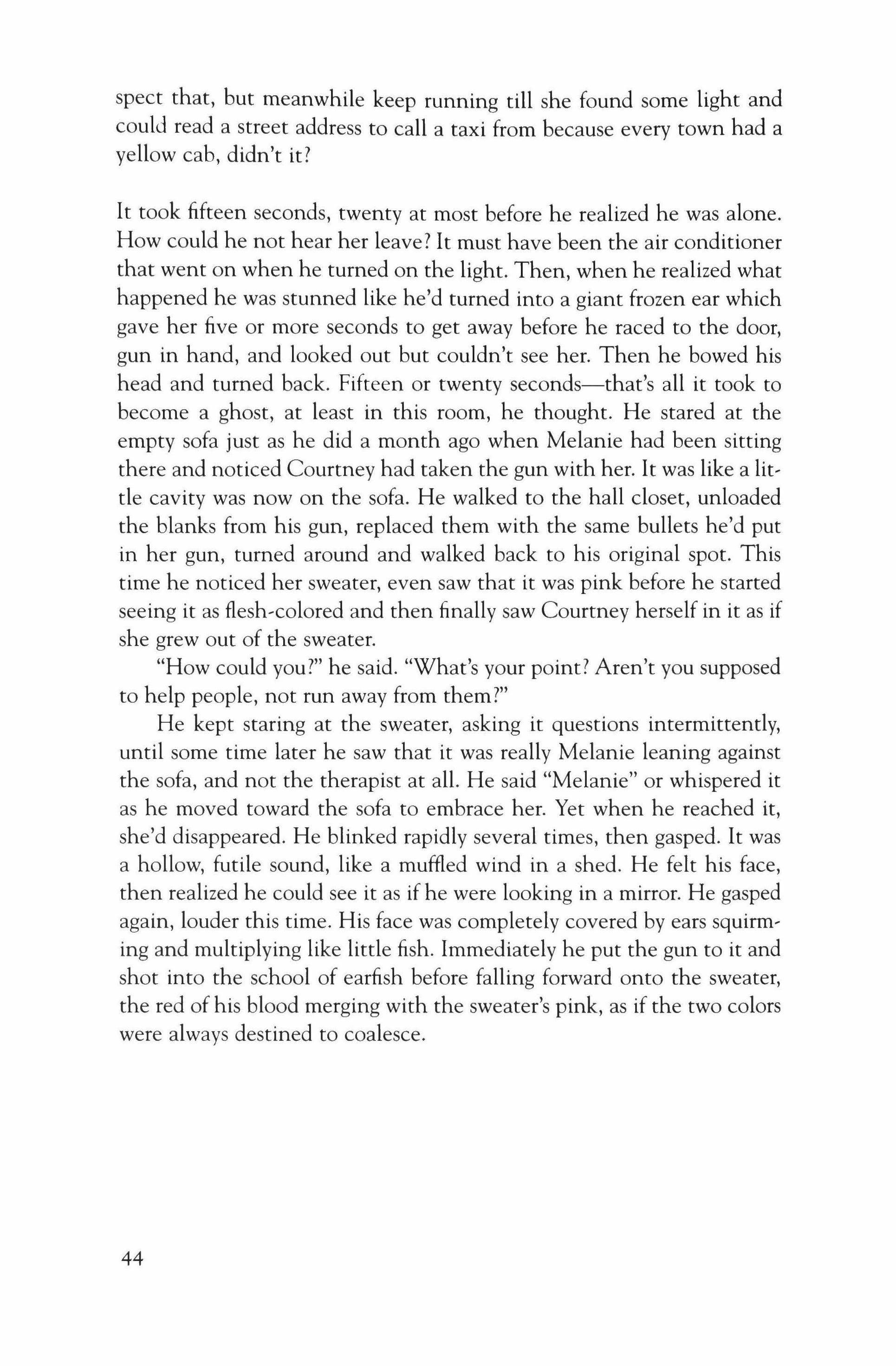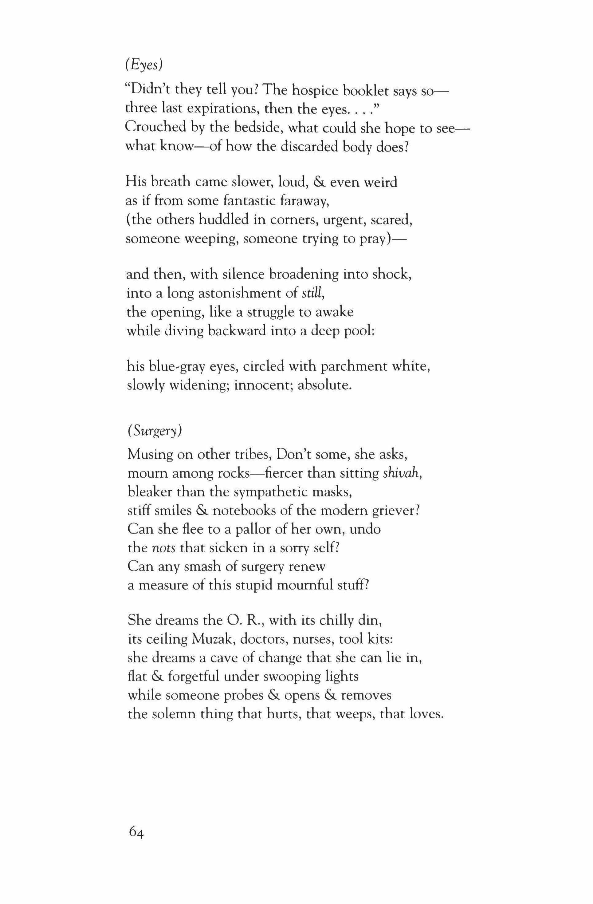 71 That was the mind's wild swarm trapezing from an oak limb; She wears geegaws from relatives; She saw that the tortured dream wrestled to the floor; I am a person who wanted it otherwise; Why are we here Who owns this house; The mind's trick mirror has made of every glimmer
