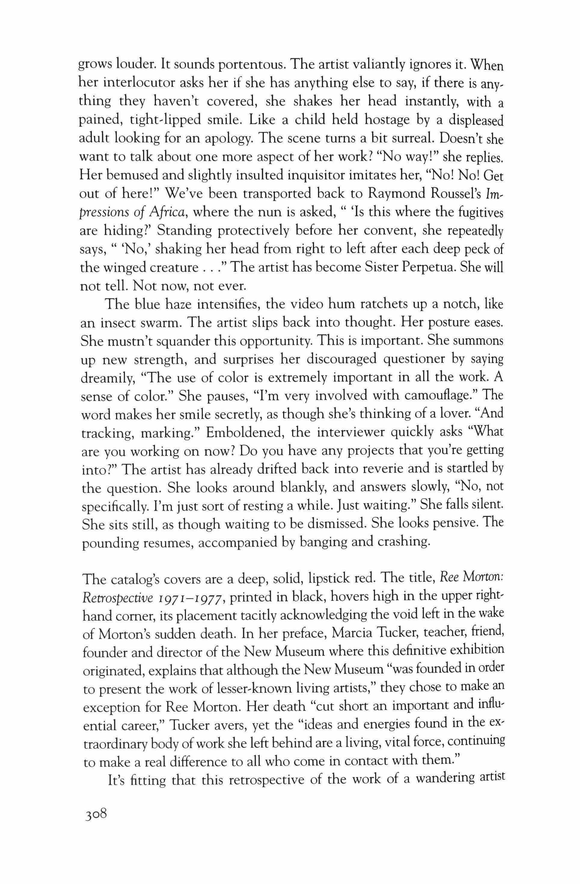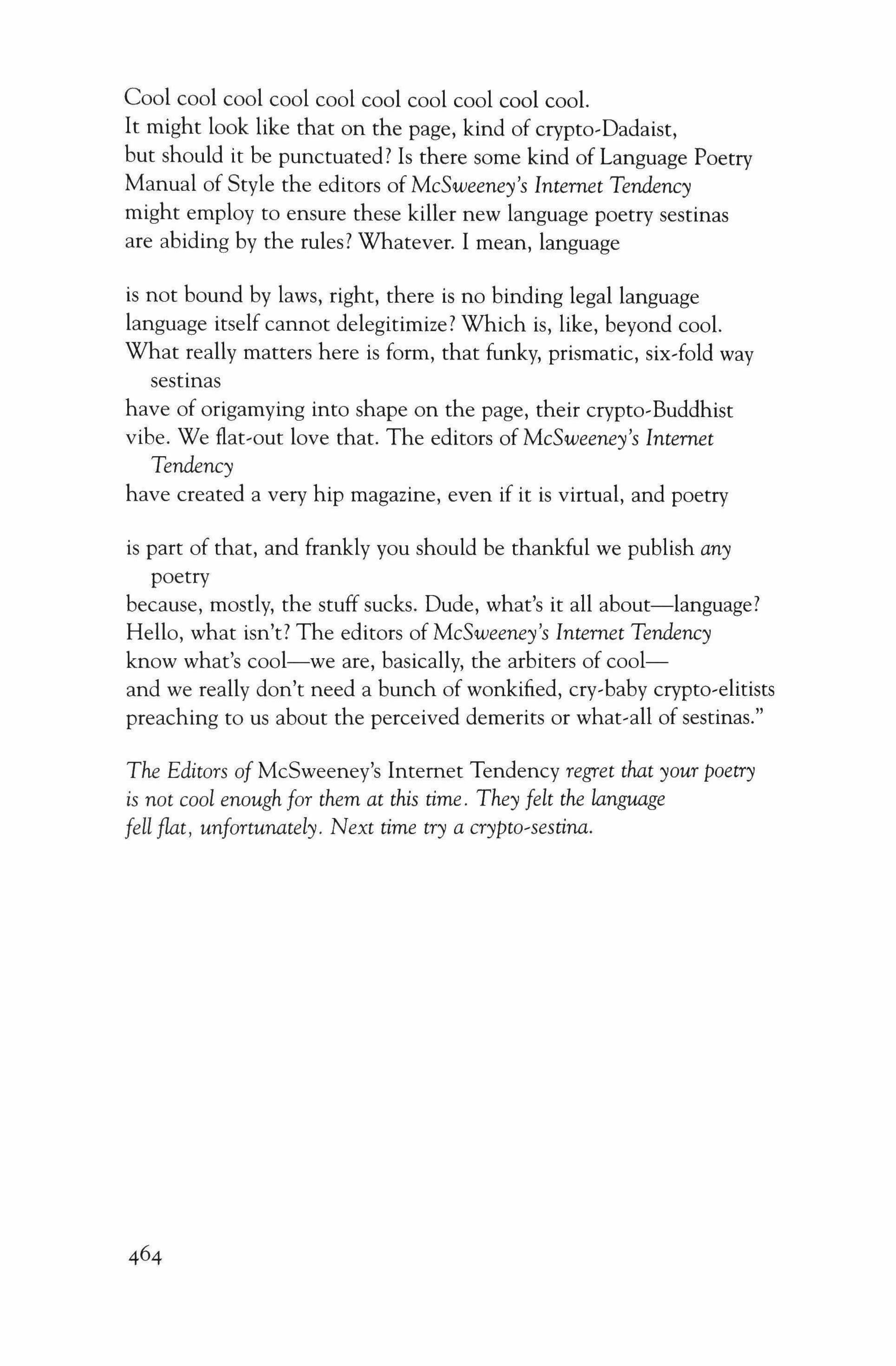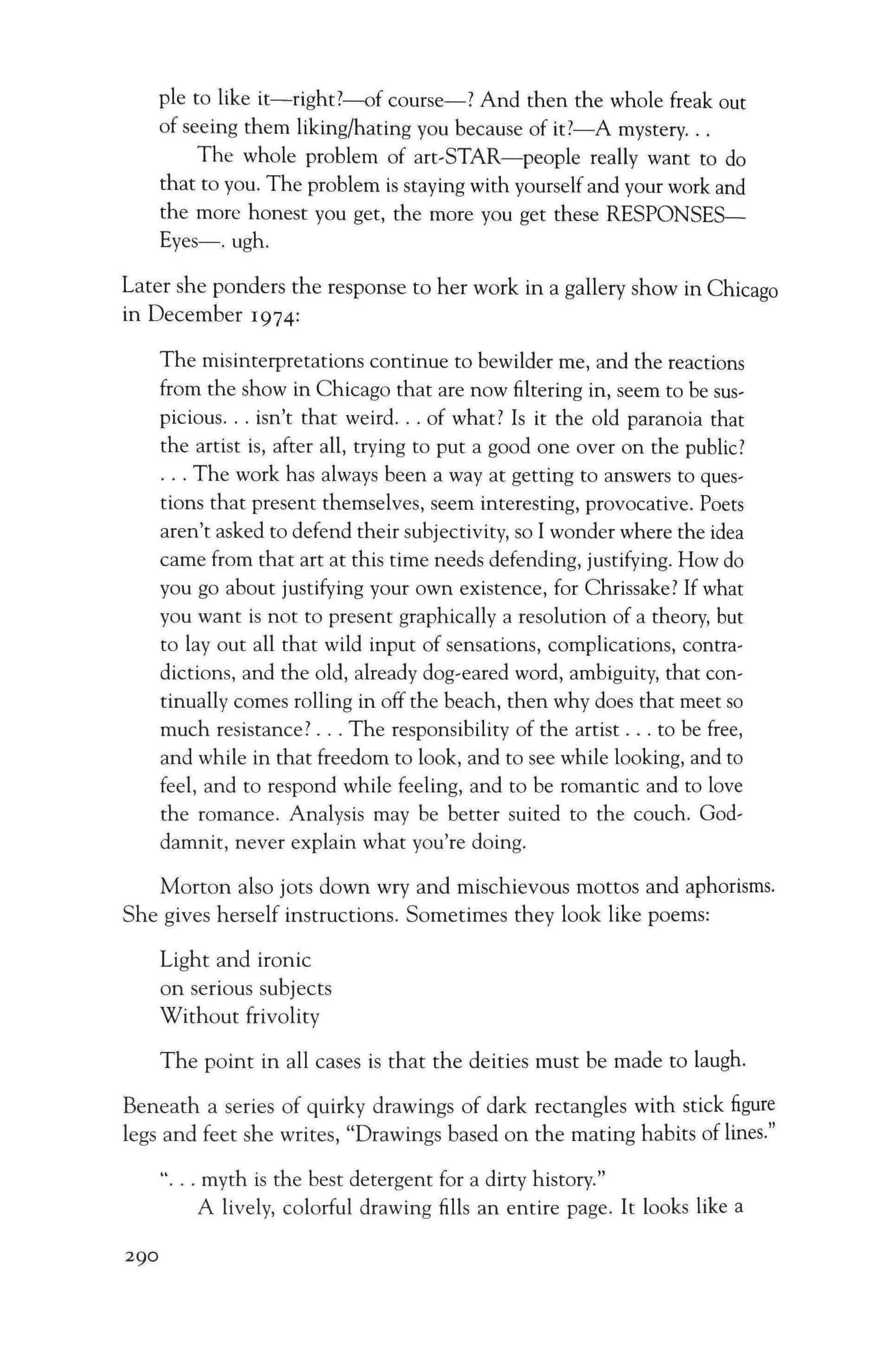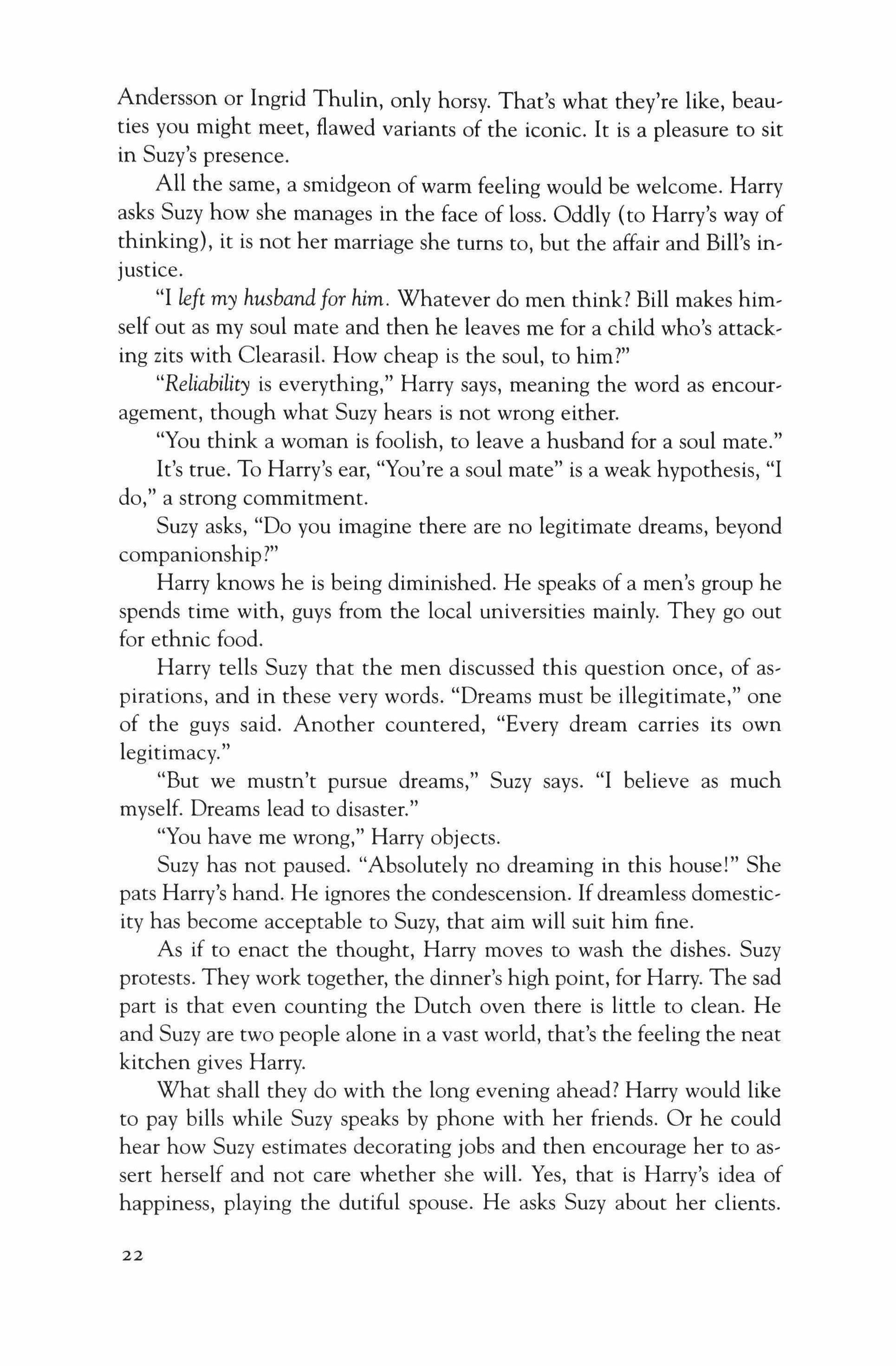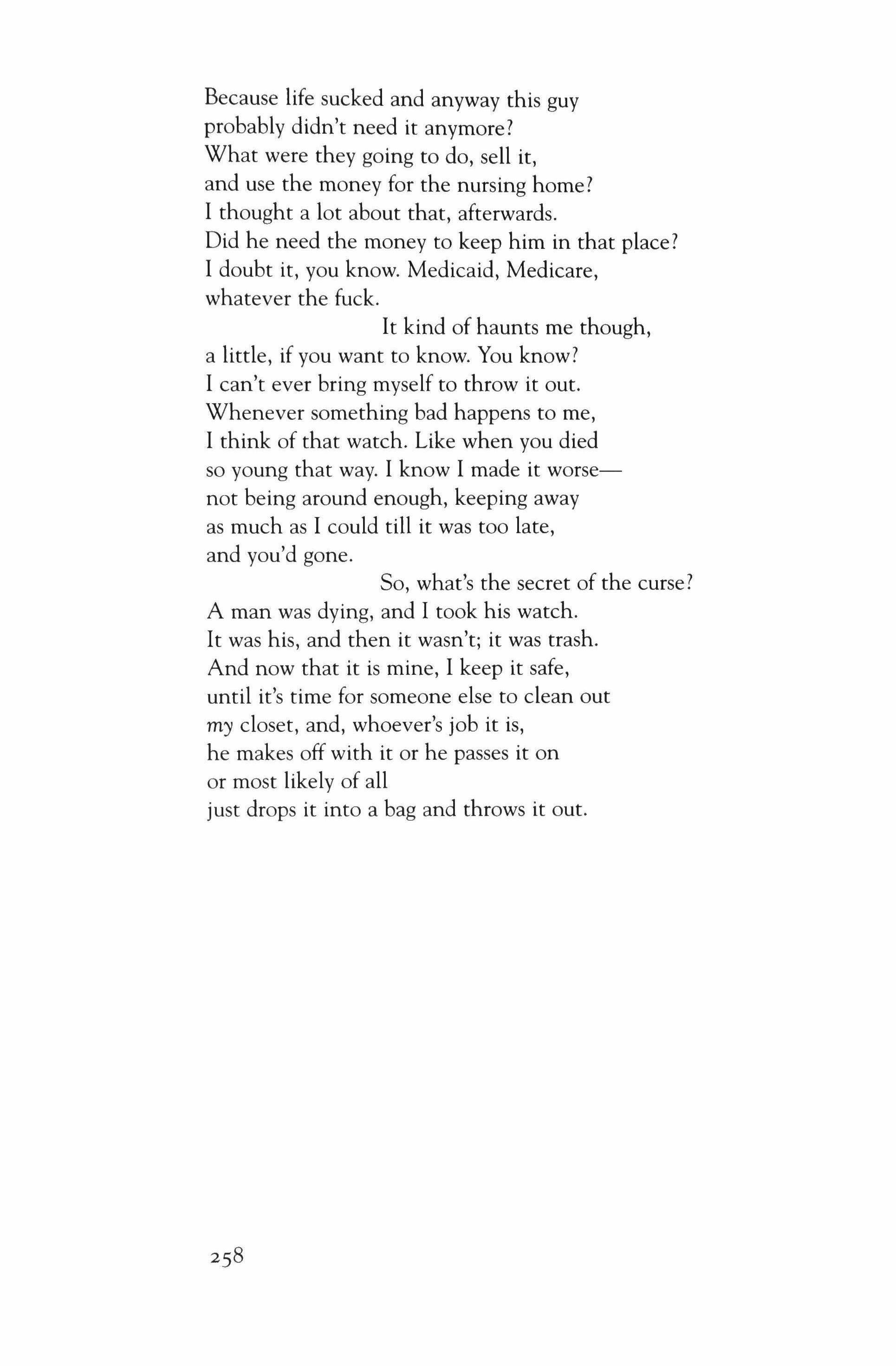 71 That was the mind's wild swarm trapezing from an oak limb; She wears geegaws from relatives; She saw that the tortured dream wrestled to the floor; I am a person who wanted it otherwise; Why are we here Who owns this house; The mind's trick mirror has made of every glimmer