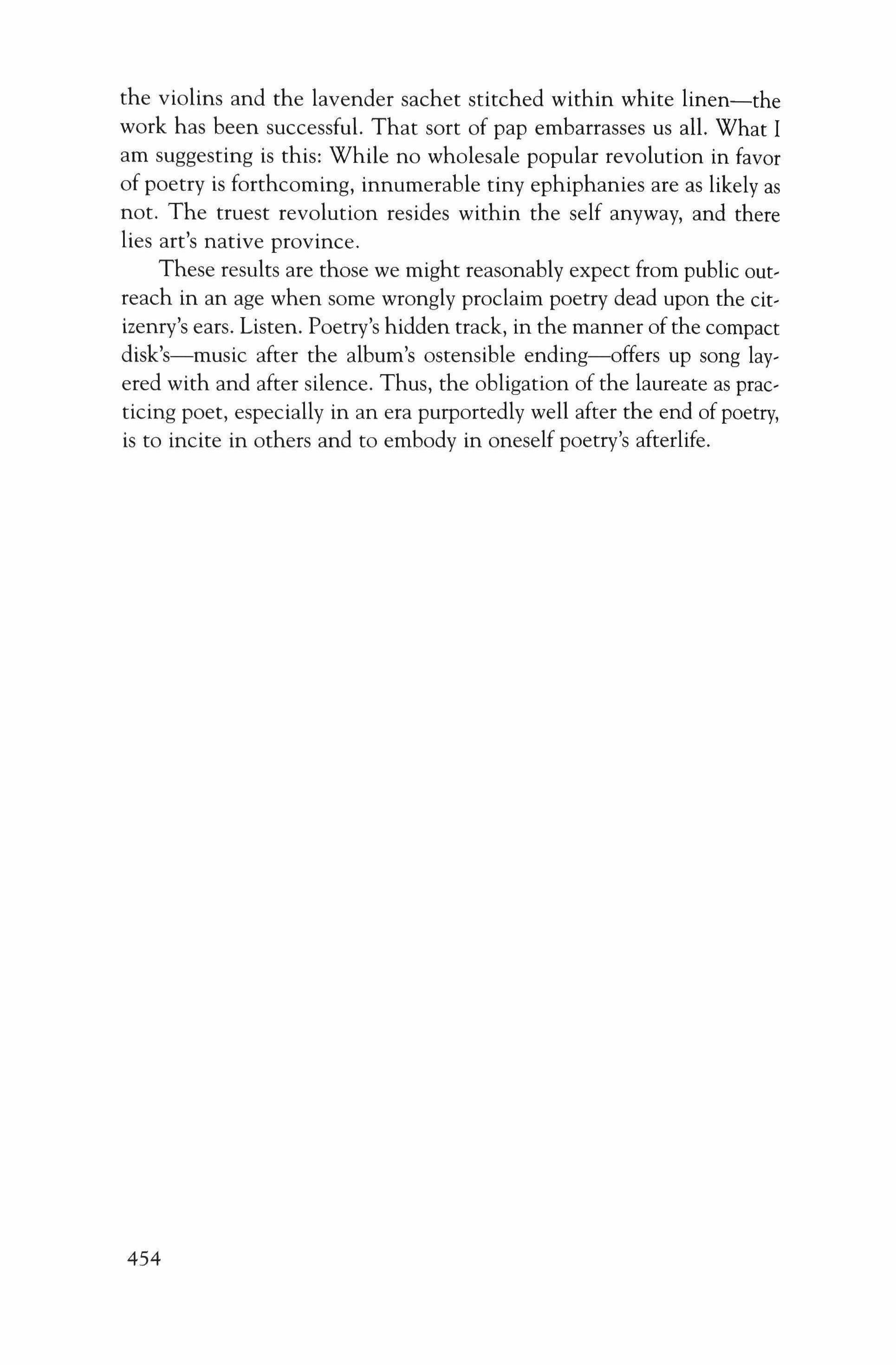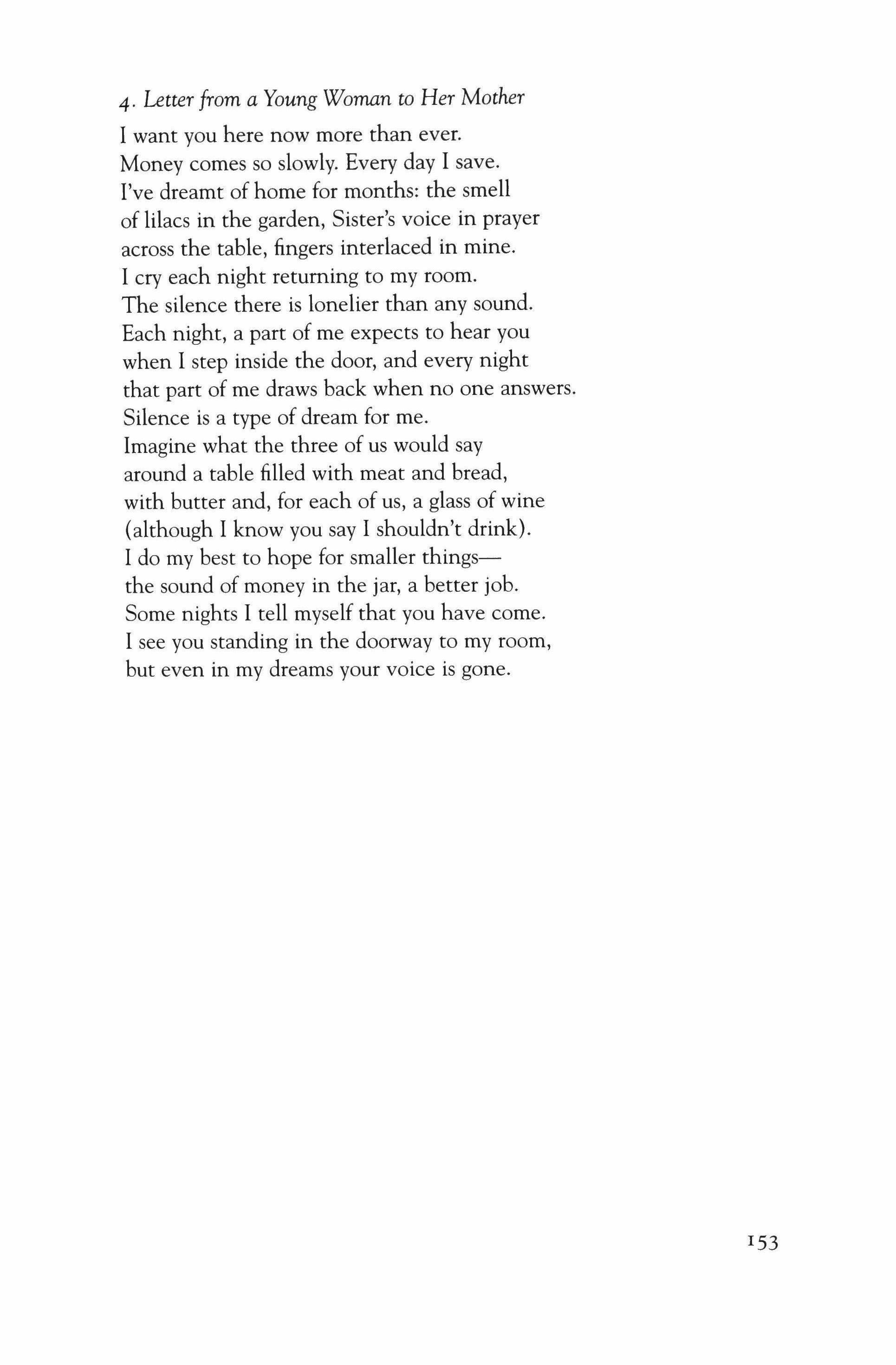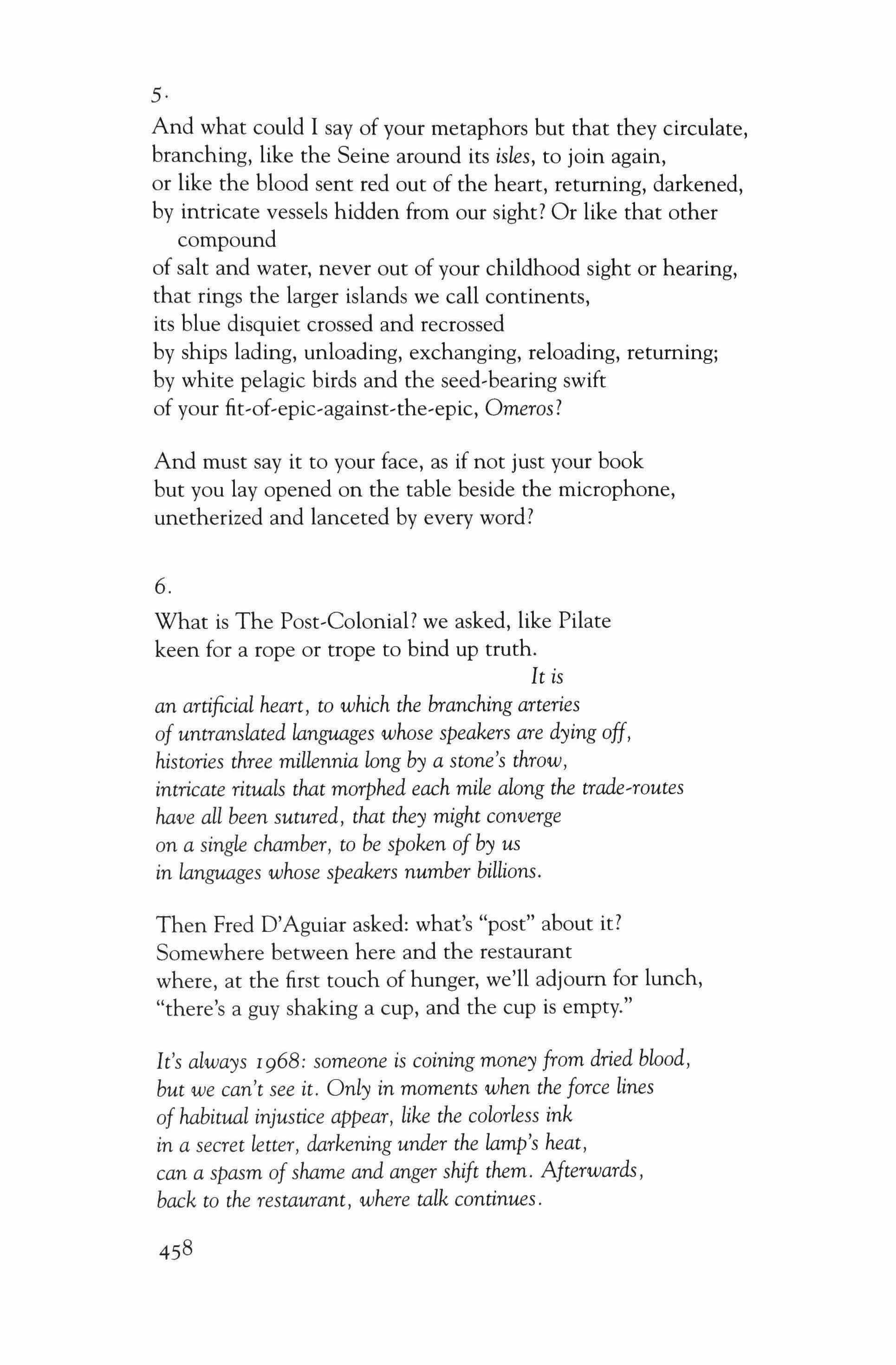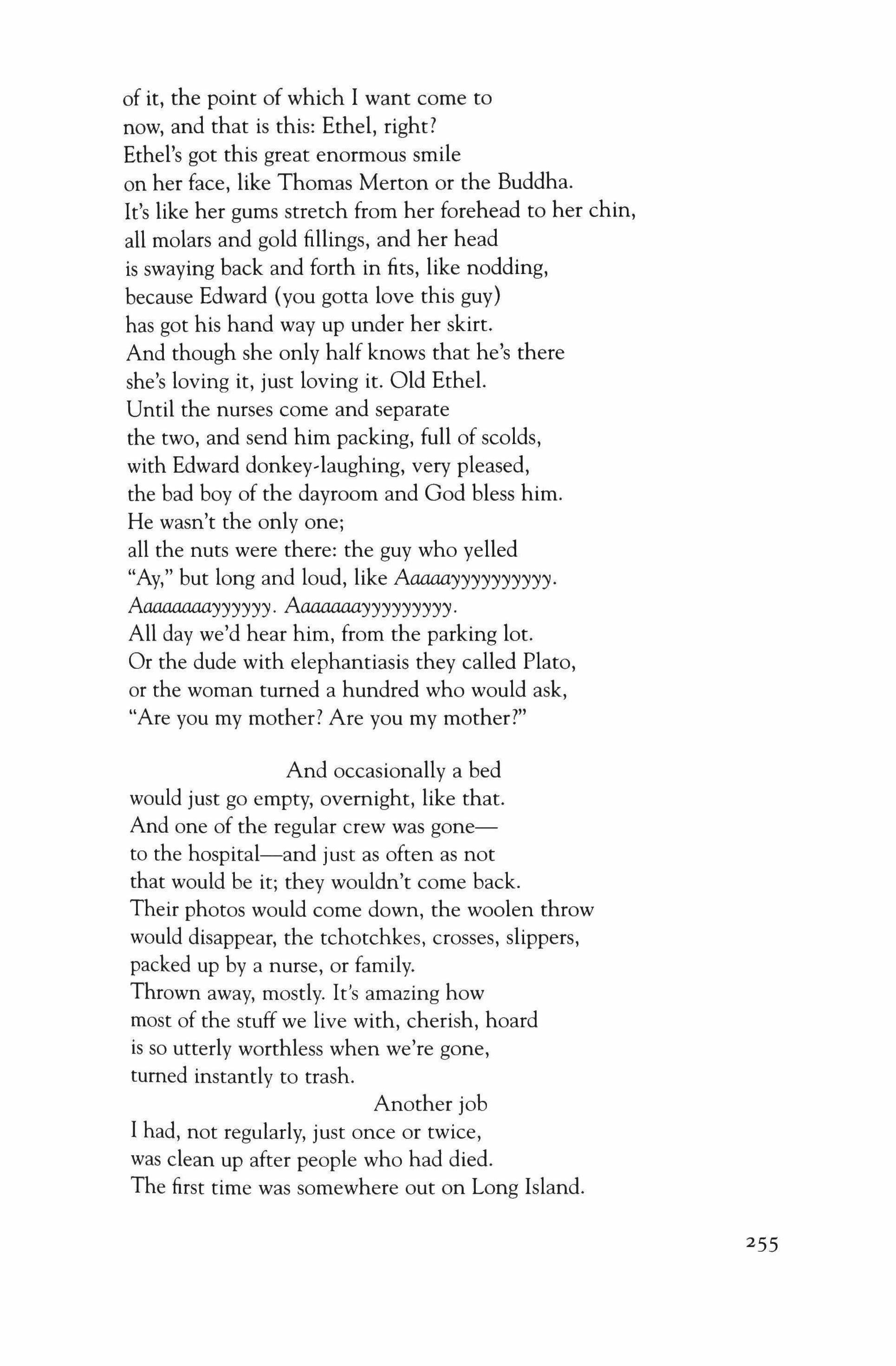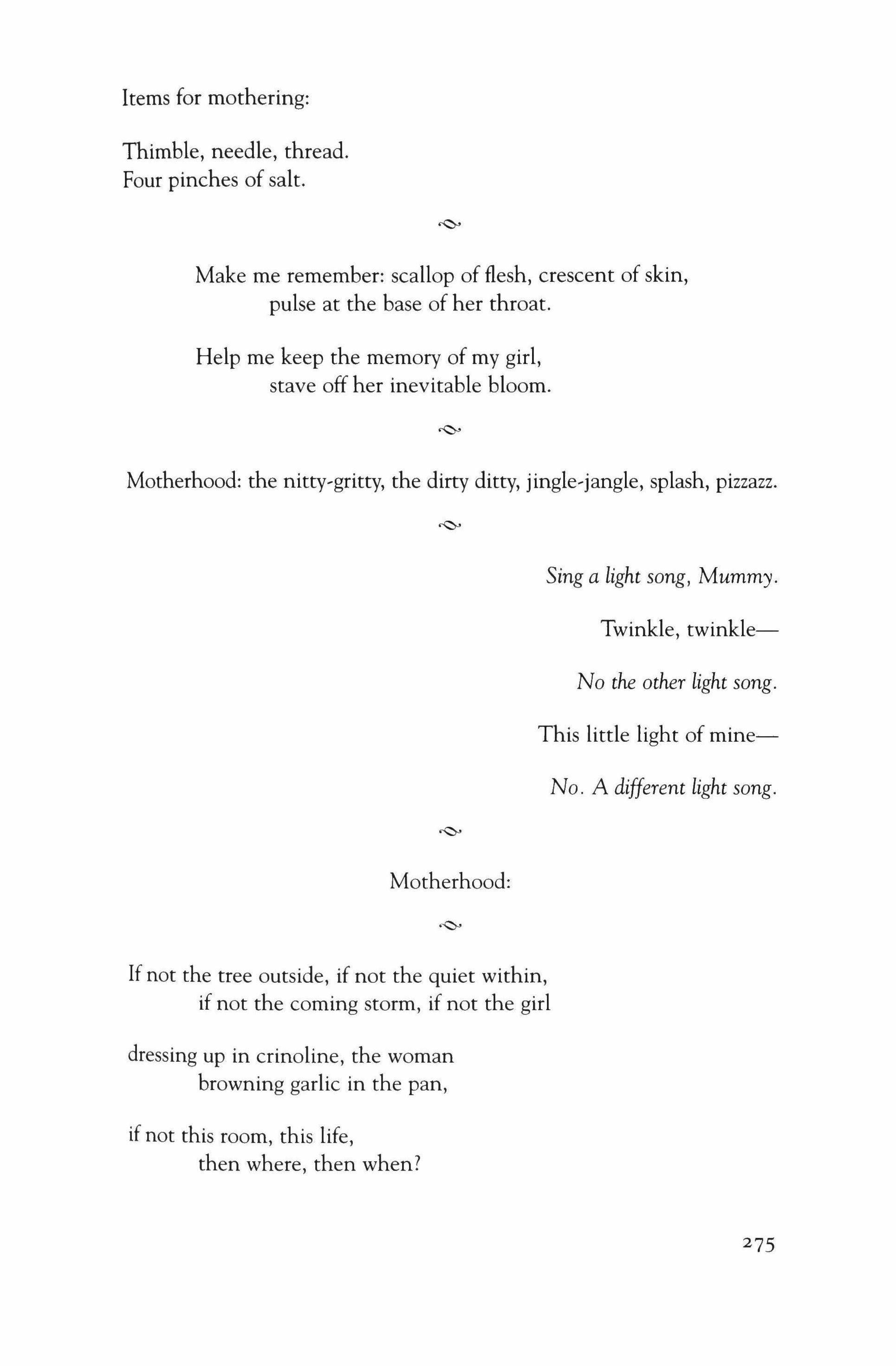 ton, 2006), and On Burning Ground: Thirty Years ofThinking About Poetry (University of Michigan Press, 2009). She is currently at work on a new collection of verse, of which "Aftermath" is the title poem and a prose work tentatively titled The Culinary Imagination. William Giraldi teaches at Boston University and is Senior Fiction Editor for the journal AGNI. His work has appeared recently in Georgia Review, Southern Review, Kenyon Review, and Antioch Review. laurence Goldstein is Professor English at the University of Michigan and the editor of Michigan Quarterly Review from 19772009. His fourth book of poems is A Room in California (Northwestern University Press/TriQuarterly Books, 2005). With Robert Chrisman, he coedited Robert Hayden: Essays on the Poetry (University of Michigan Press, 2005.). Debora Greger's most recent book of poems, Men, Women, and Ghosts, was published by Penguin in 2008. Jennifer Grotz is the author of Cusp (Houghton Mifflin, 2003). Brian Henry's most recent book is The Stripping Point (Counterpath, 2007). His translation of Tomas Salamua's Woods and Chalices appeared from Harcourt in 2008. Denis Hirson has published five books, all of them concerned with the memory of the apartheid years in South Africa, all of them crossing the frontier between prose and poetry: The House Next Door to Africa, I Remember King Kong (the Boxer), We Walk Straight So You Better Get Out the Way, White Scars, and Gardening in the Dark. White Scars was runner-up in 2007 for the major South African non-fiction prize, the Alan Paton Award. Hirson is