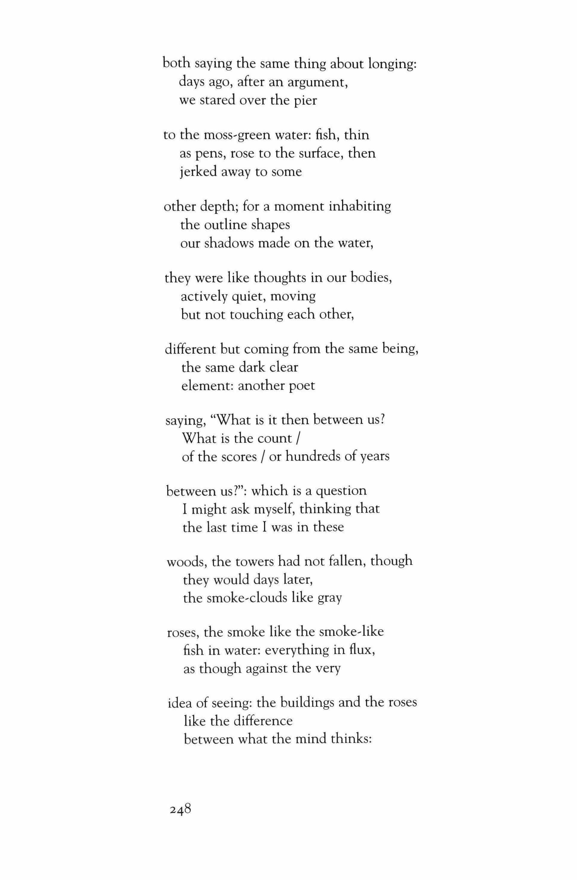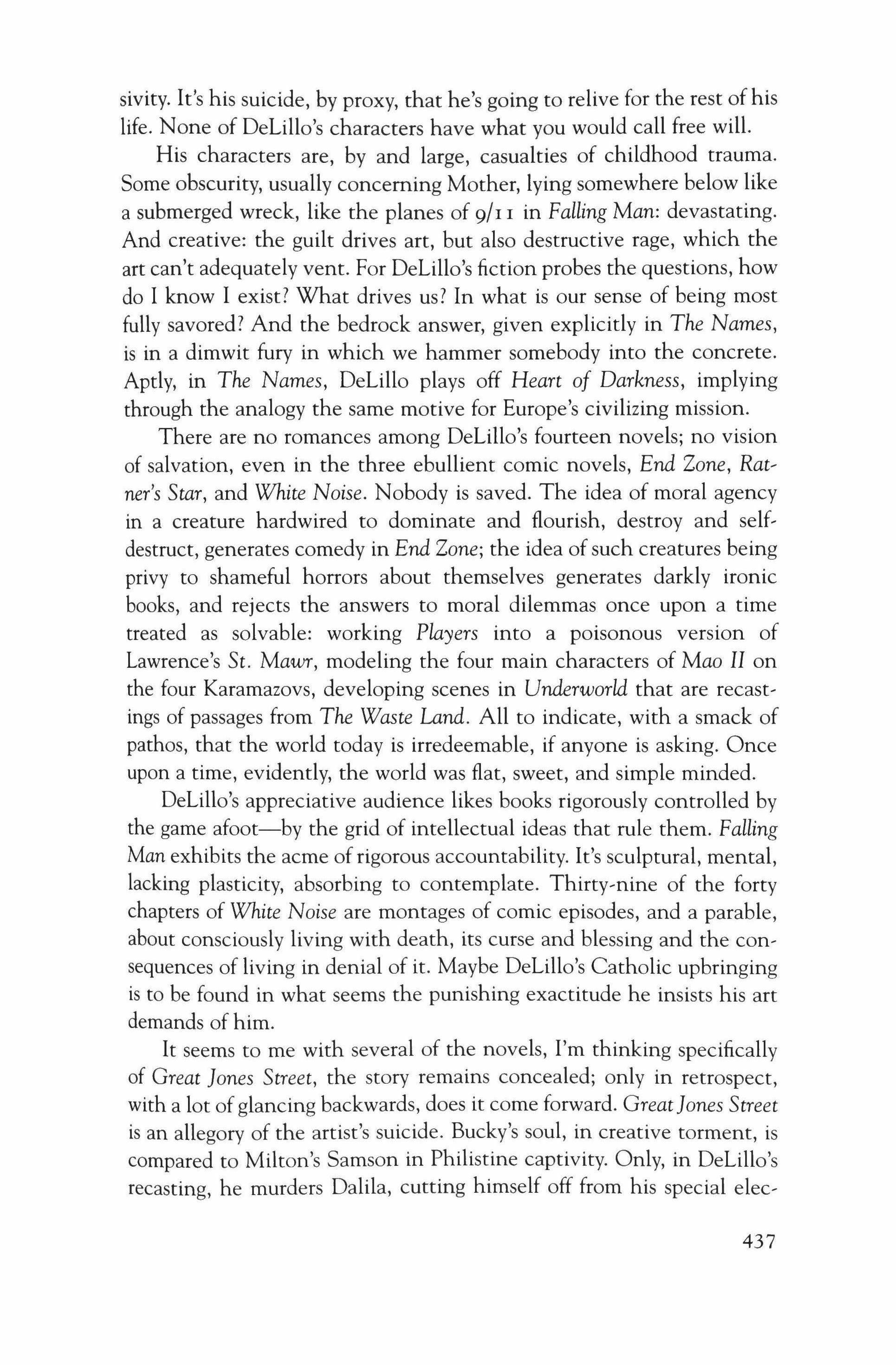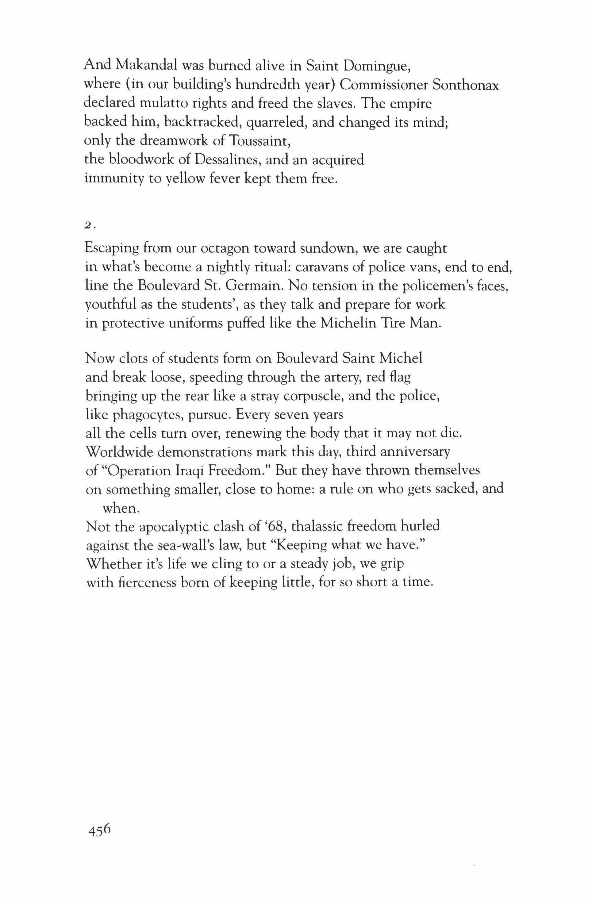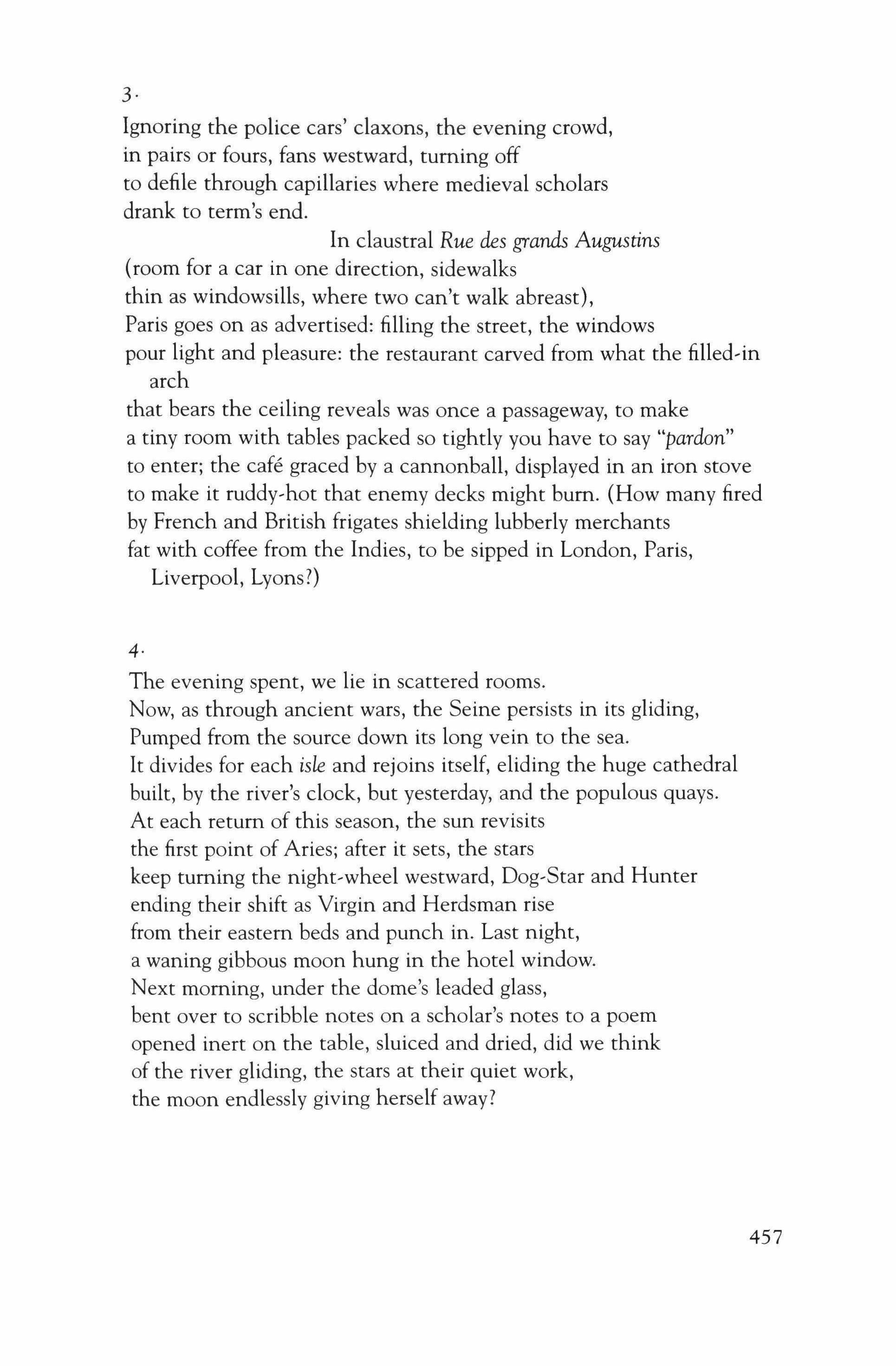 Gary Adelman's essay is taken from his forthcoming book, Coordinates for Reading Cormac McCarthy, Don DeLillo, and Robert Stone. Earlier he published essays on D. H. Lawrence and Samuel Beckett in TriQuarterly. Rick Barot's second book of poems, Want, was published by Sarasande Books in 2008. He has new poems forthcoming in American Poetry Review, Kenyon Review, and Smartish Pace. John Barr's books include The Hundred Fathom Curve and Grace (Story Line Press, 1997 and 1999), as well as four limited edition collections. He is president of the Poetry Foundation. Jack B. Bedell is a Women's Hospital Distinguished Professor in the Humanities Department at Southeastern Louisiana University where he also edits for Louisiana Literature and directs the Louisiana Literature Press. His most recent collection, Come Rain, Come Shine, was released by Texas Review Press in 2006. Bruce Bond's most recent books include Cinder (Etruscan Press, 2008), Blind Rain (LSU Press, 2008), and Peal (Etruscan, 2009). Presently, he is Regents Professor of English at the University of North Texas. Paul Breslin is the author of You Are Here (TriQuarterly Books, 2000) and has recently completed a second poetry manuscript. His poems have appeared in AGNI, Literary Imagination, Poetry, Slate, TriQuarterly, and elsewhere. Karen