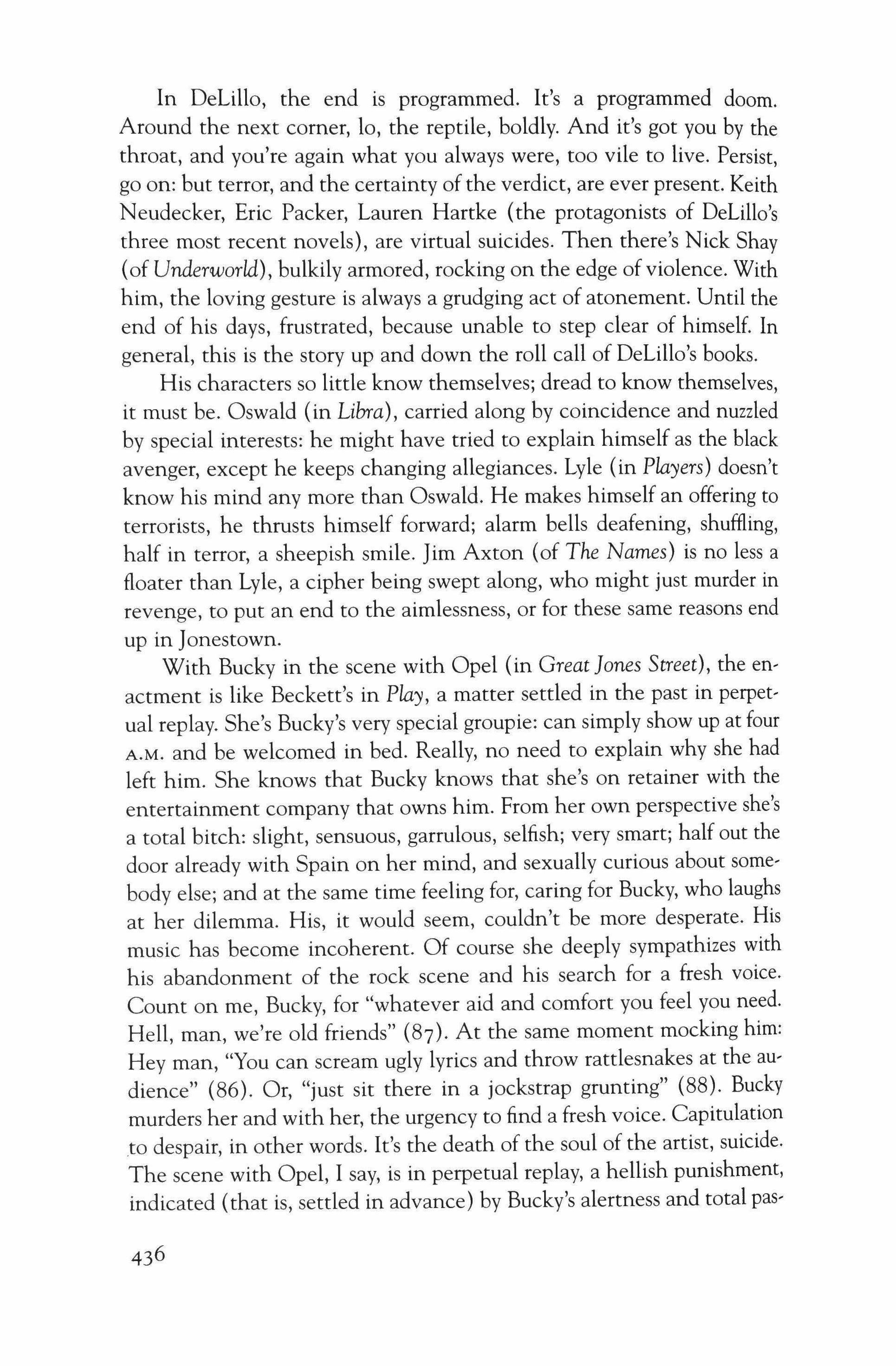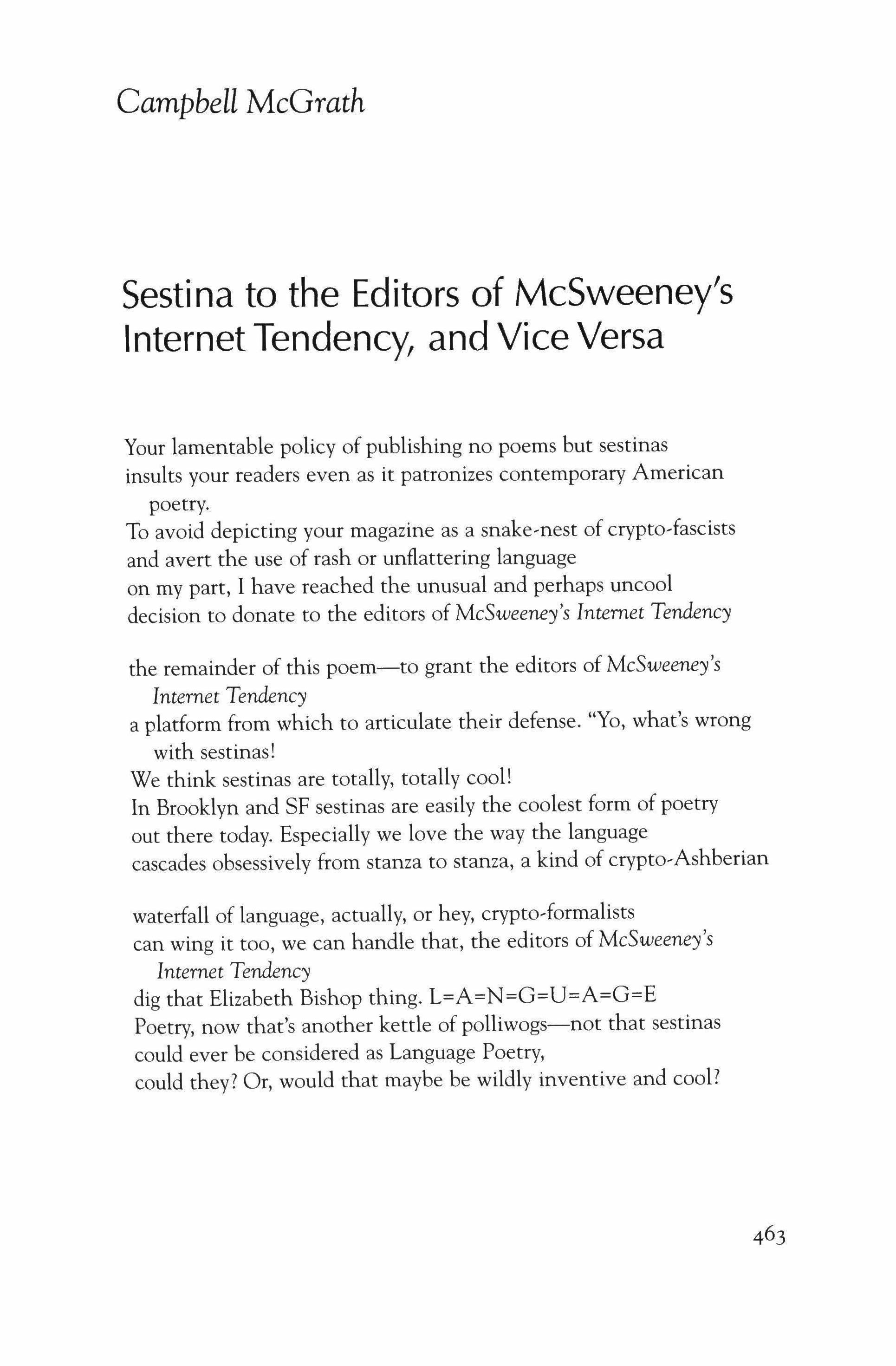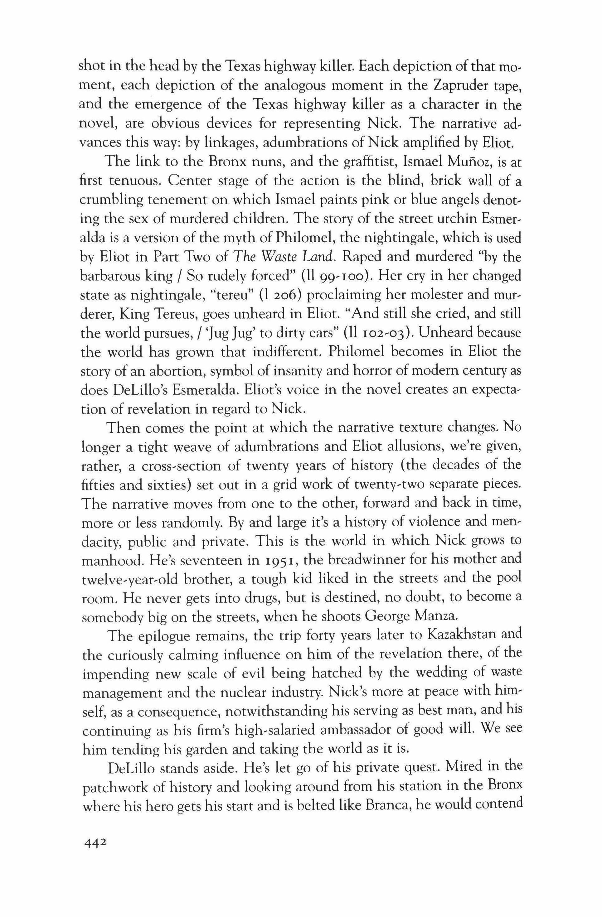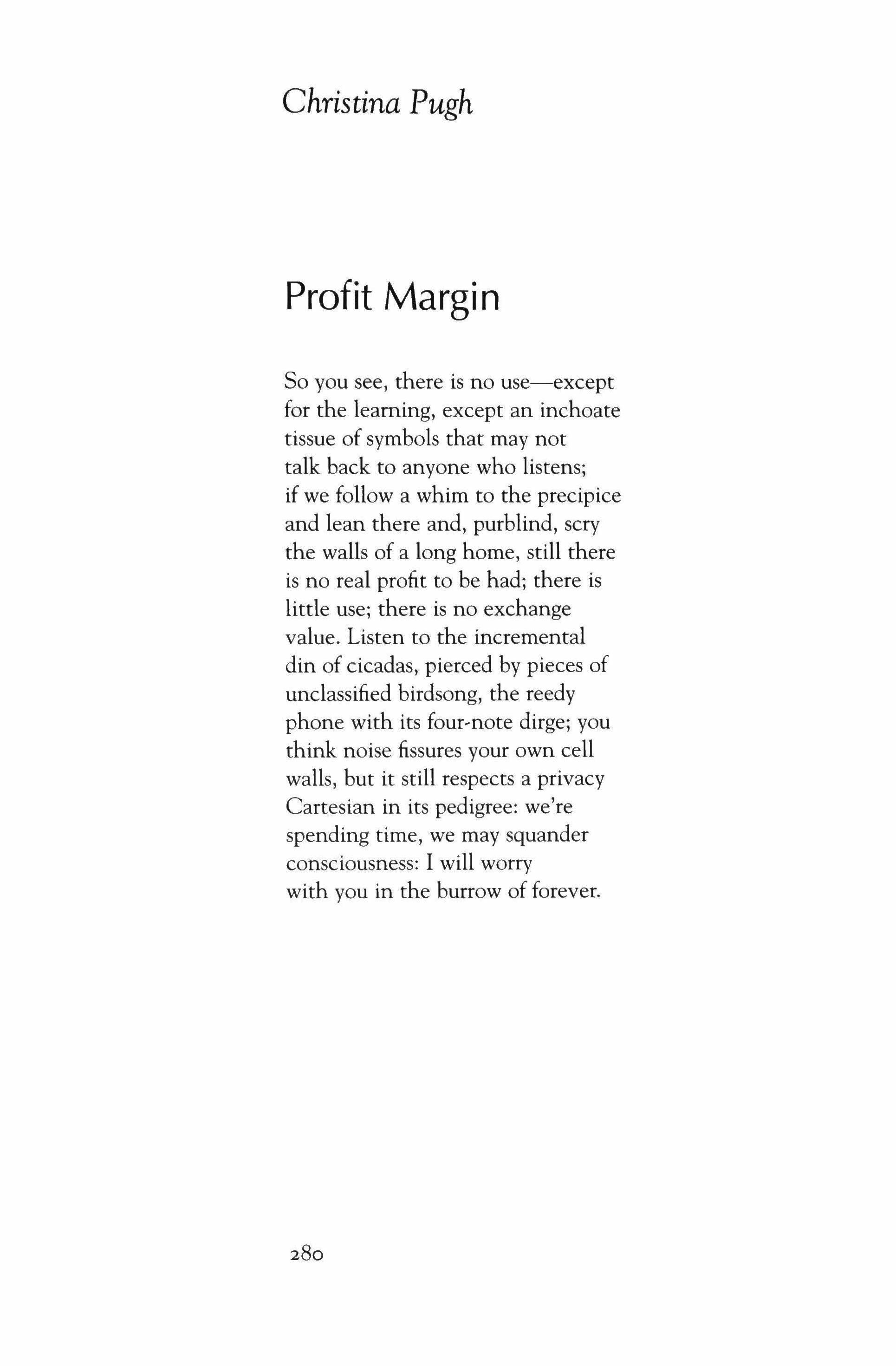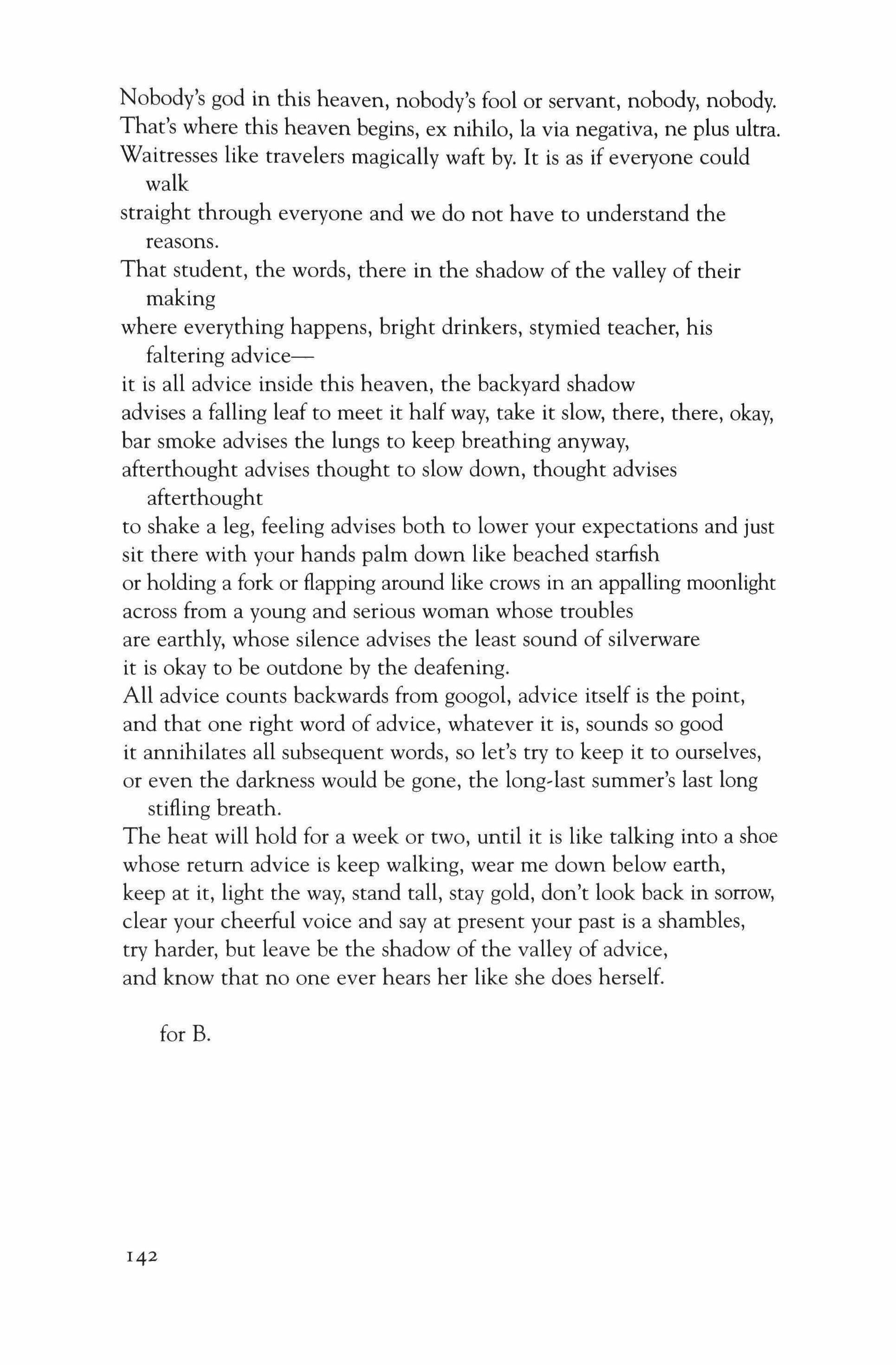 Gary Adelman's essay is taken from his forthcoming book, Coordinates for Reading Cormac McCarthy, Don DeLillo, and Robert Stone. Earlier he published essays on D. H. Lawrence and Samuel Beckett in TriQuarterly. Rick Barot's second book of poems, Want, was published by Sarasande Books in 2008. He has new poems forthcoming in American Poetry Review, Kenyon Review, and Smartish Pace. John Barr's books include The Hundred Fathom Curve and Grace (Story Line Press, 1997 and 1999), as well as four limited edition collections. He is president of the Poetry Foundation. Jack B. Bedell is a Women's Hospital Distinguished Professor in the Humanities Department at Southeastern Louisiana University where he also edits for Louisiana Literature and directs the Louisiana Literature Press. His most recent collection, Come Rain, Come Shine, was released by Texas Review Press in 2006. Bruce Bond's most recent books include Cinder (Etruscan Press, 2008), Blind Rain (LSU Press, 2008), and Peal (Etruscan, 2009). Presently, he is Regents Professor of English at the University of North Texas. Paul Breslin is the author of You Are Here (TriQuarterly Books, 2000) and has recently completed a second poetry manuscript. His poems have appeared in AGNI, Literary Imagination, Poetry, Slate, TriQuarterly, and elsewhere. Karen