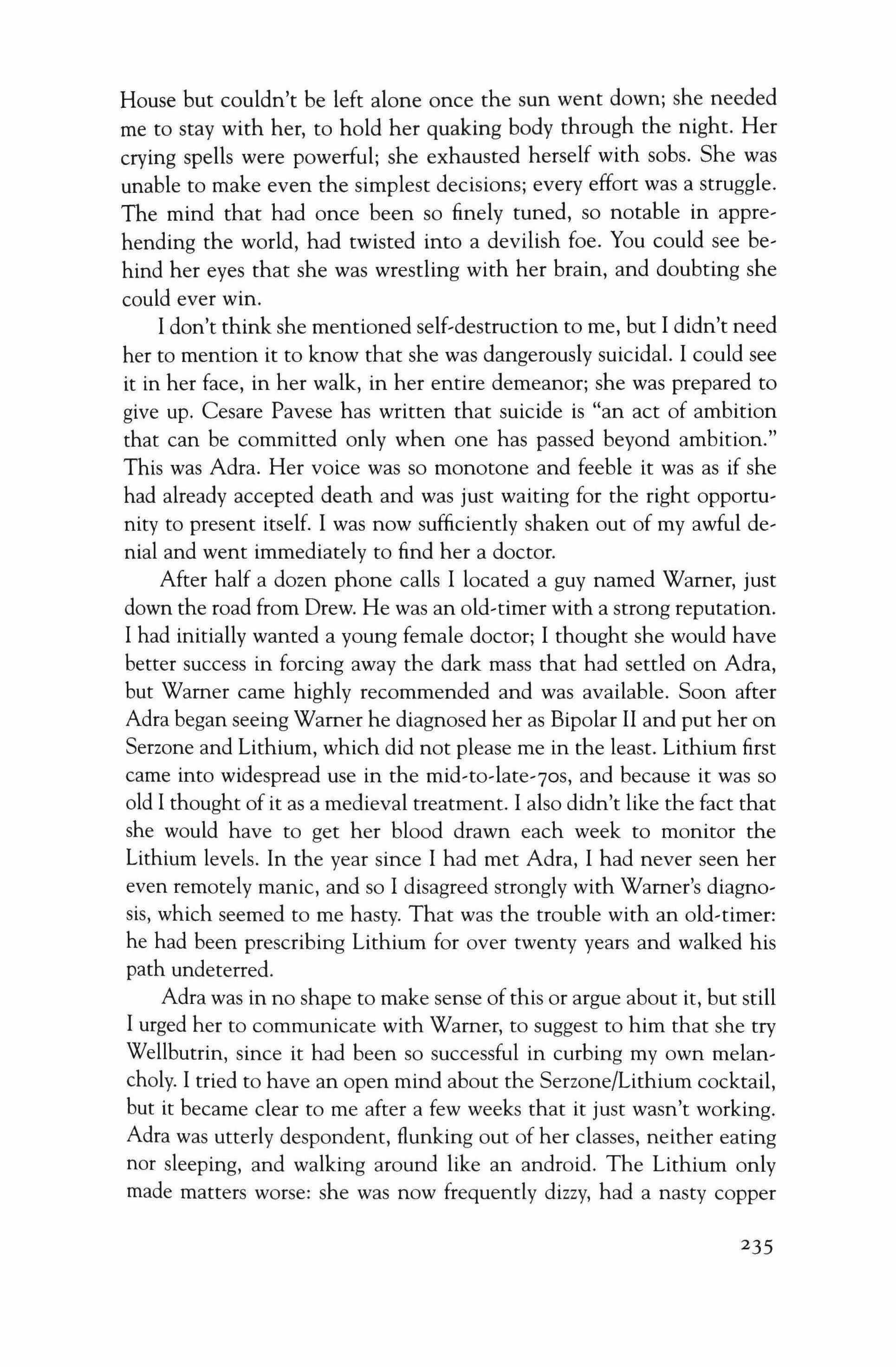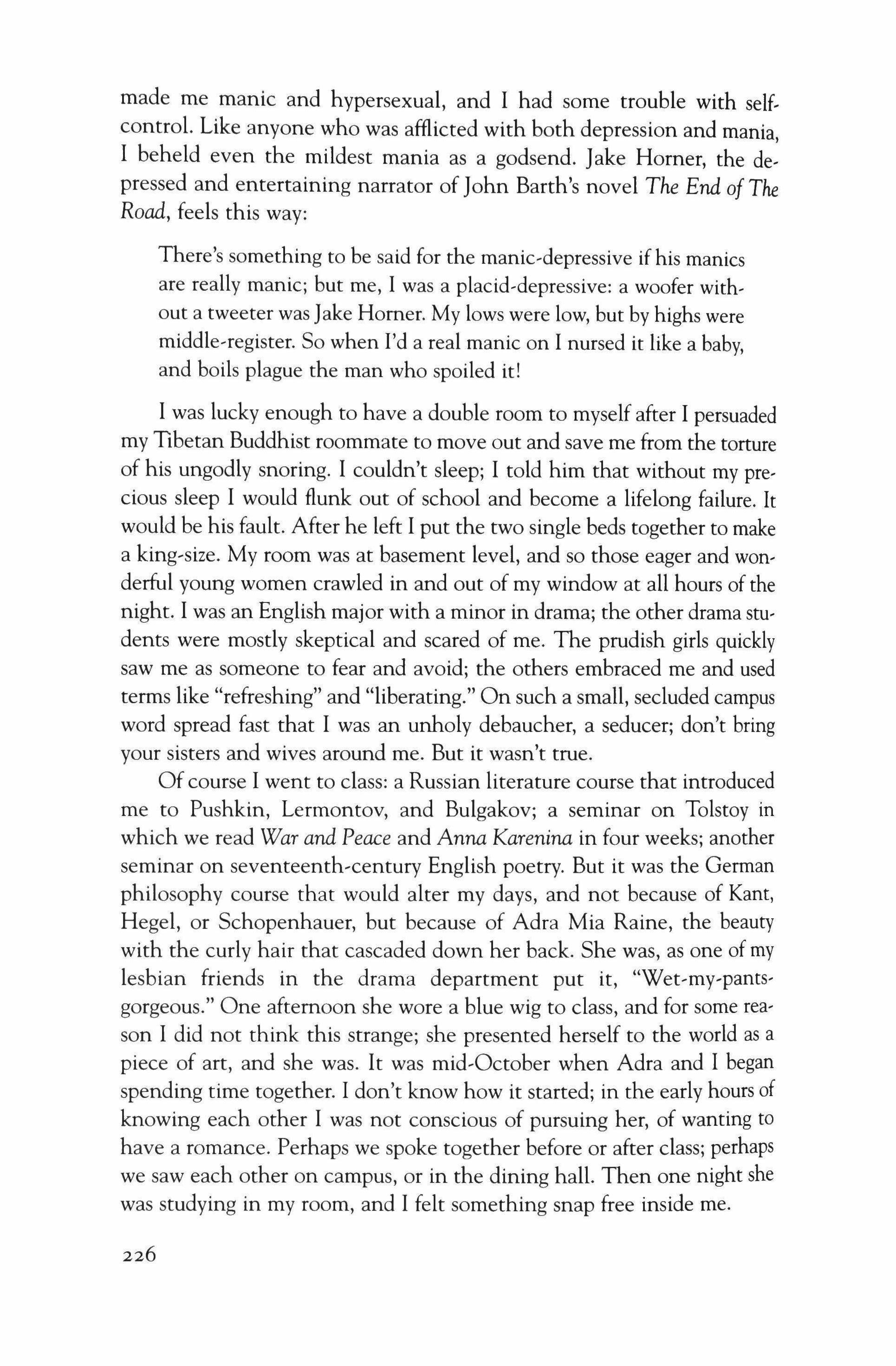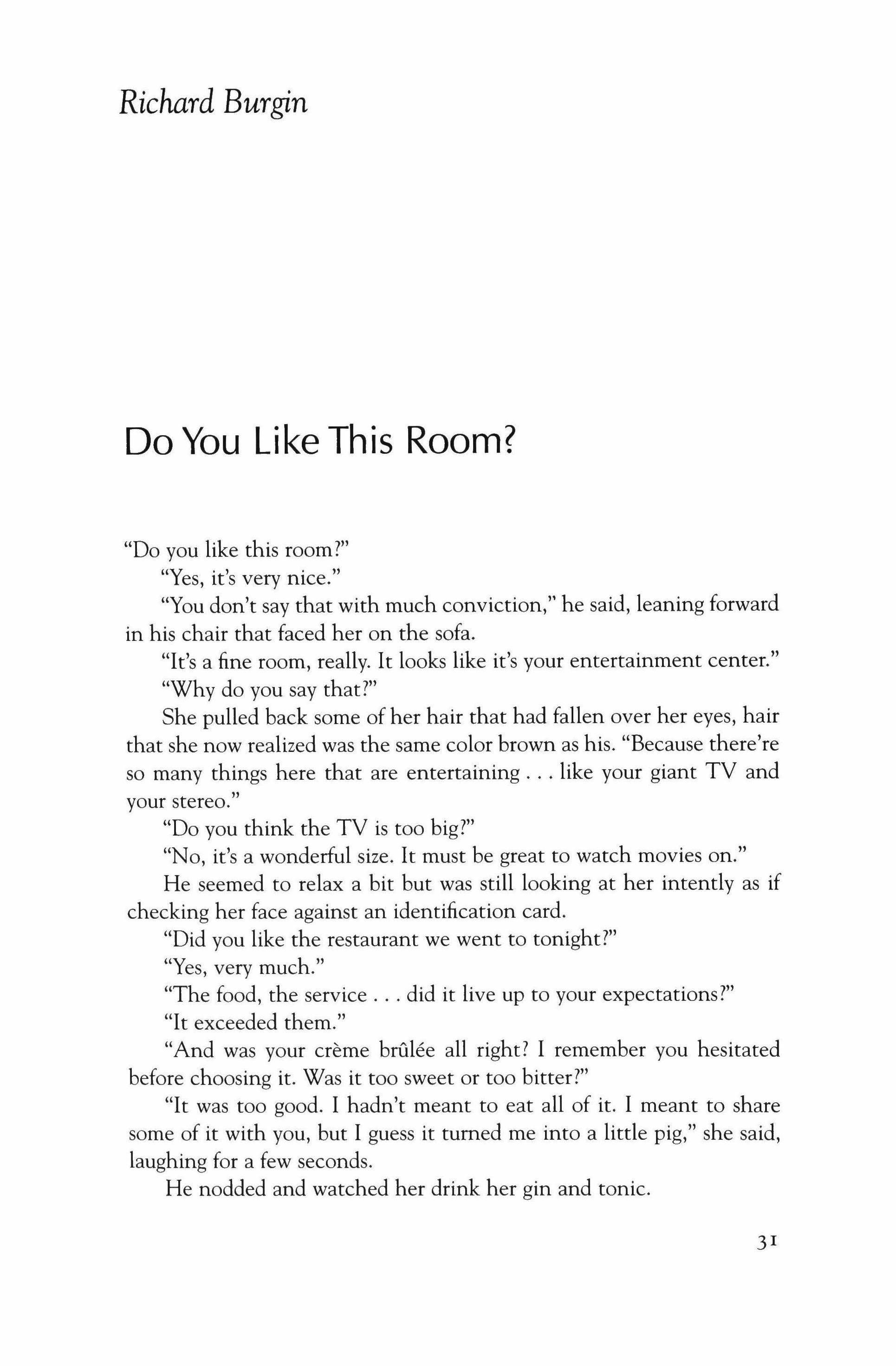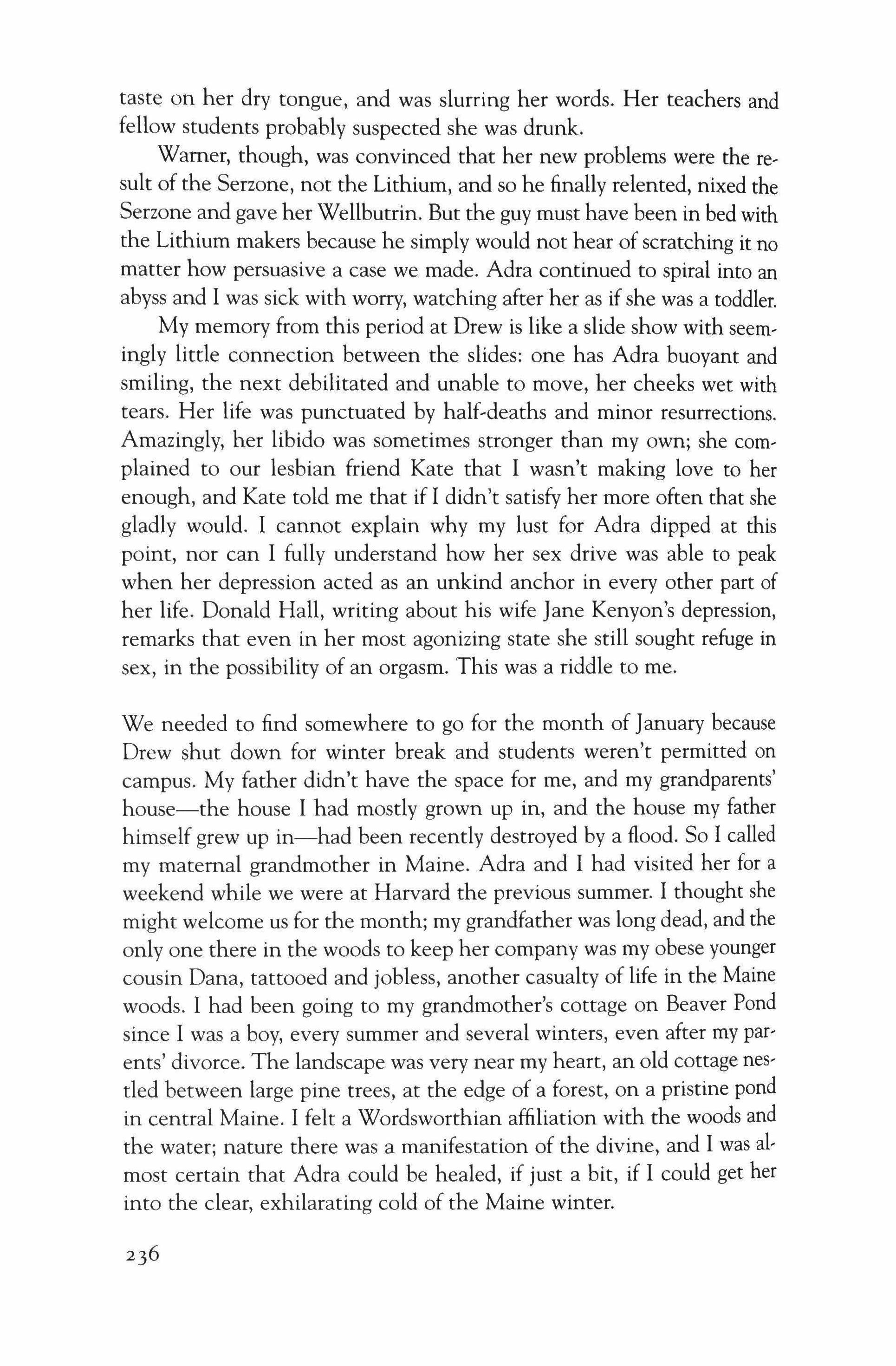 Greg Johnson has published twelve volumes of fiction, poetry, criticism, and biography. He lives in Atlanta. Elizabeth Kadetsky grew up and lives in New York City. As a Fulbright fellow to India in creative writing in 1999-2000, she studied with the Iyengars in India while conducting interviews with Iyengar and his contemporaries as part of a project to construct a history of modern yoga. Her memoir about the experience, First There Is a Mountain (Little, Brown and Co.), appeared in stores January 2, 2004. Her fiction and journalism have appeared in Best New American Voices, the Pushcart Prizes, Gettysburg Review, Self, the Village Voice, LA Weekly and the Nation. Her fiction has been selected in many contests including as first pick in the AWP Grace Paley manuscript award for 2004. David Kirby teaches at Florida State University. His Uttle Richard: The Birth ofRock 'n' RoU will appear in the fall of 2009. Michael Kobre is the Dana Professor of English and OnCampus Director of the Low-Residency MFA Program in Creative Writing at Queens University of Charlotte. He is the author of Walker Percy's Voices (University of Georgia Press, 2000). His criticism and fiction have appeared in Tin House, West Branch, Critique, MississiPPi Quarterly, and other journals. Peter D. Kramer is the author of six books, including Listening to Prozac (Viking, 1993), Against Depression