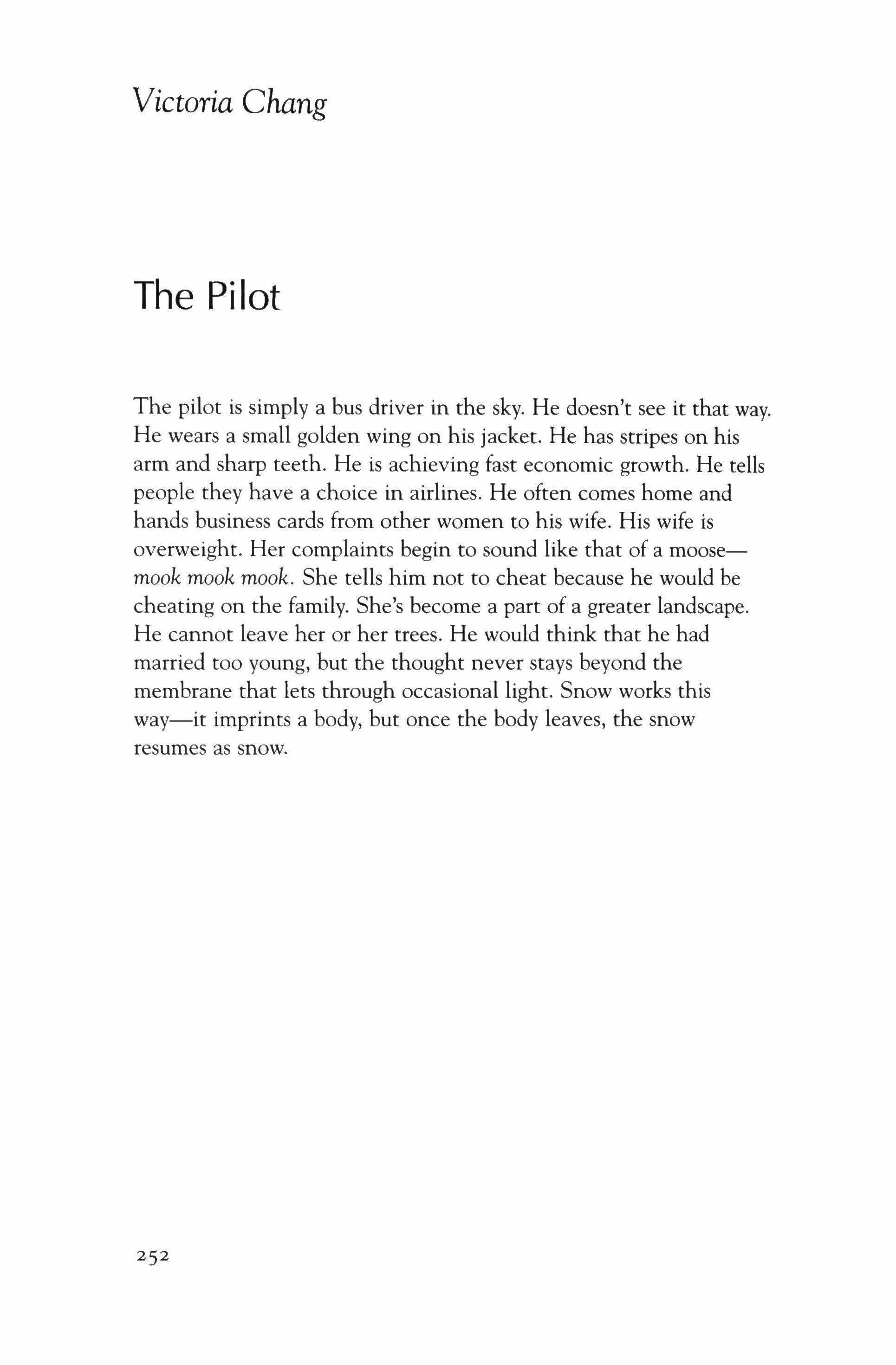Brown's first collection of short stories, Pins and Needles, was the recipient of AWP's Grace Paley Prize for Short Fiction and published in 2007 by the University of Massachusetts Press. Her work has appeared in the O. Henry Prize Stories, 2006, the Best American Short Stories, 2008, and in journals that include the Georgia Review, Epoch, Tampa Review and American Short Fiction. She studied creative writing at Cornell University and the University of South Florida in Tampa, where she is currently working on a novel. Richard Burgin is the author of twelve books including, most recently, the story collection The Conference on Beautiful Moments (Johns Hopkins University Press, 2007) and The Identity Club: New and Selected Stories and Songs (Ontario Review Press, 2005) which was listed as one of the "Best Books of the Year" by the Times Literary Supplement. His stories have won five Pushcart Prizes and been reprinted in the Best American Mystery Stories 2005 and the Ecco Anthology ofContemporary American Short Fiction. Victoria Chang's second book of poems was published in 2008 by the University of Georgia Press, as part of the VQR Poetry Series. Her first book won the Crab Orchard Review Open Competition Prize in Poetry and was published by the Southern Illinois University Press in 2005. It won the Association of Asian American Studies Book Award. Her poetry has appeared in or is forthcoming in publications such as Paris Review, Poetry, New England Review, Ploughshares, Kenyon Review, and Best American Poetry 2005. She also edited an anthology titled: Asian American Poetry: The Next Genera-