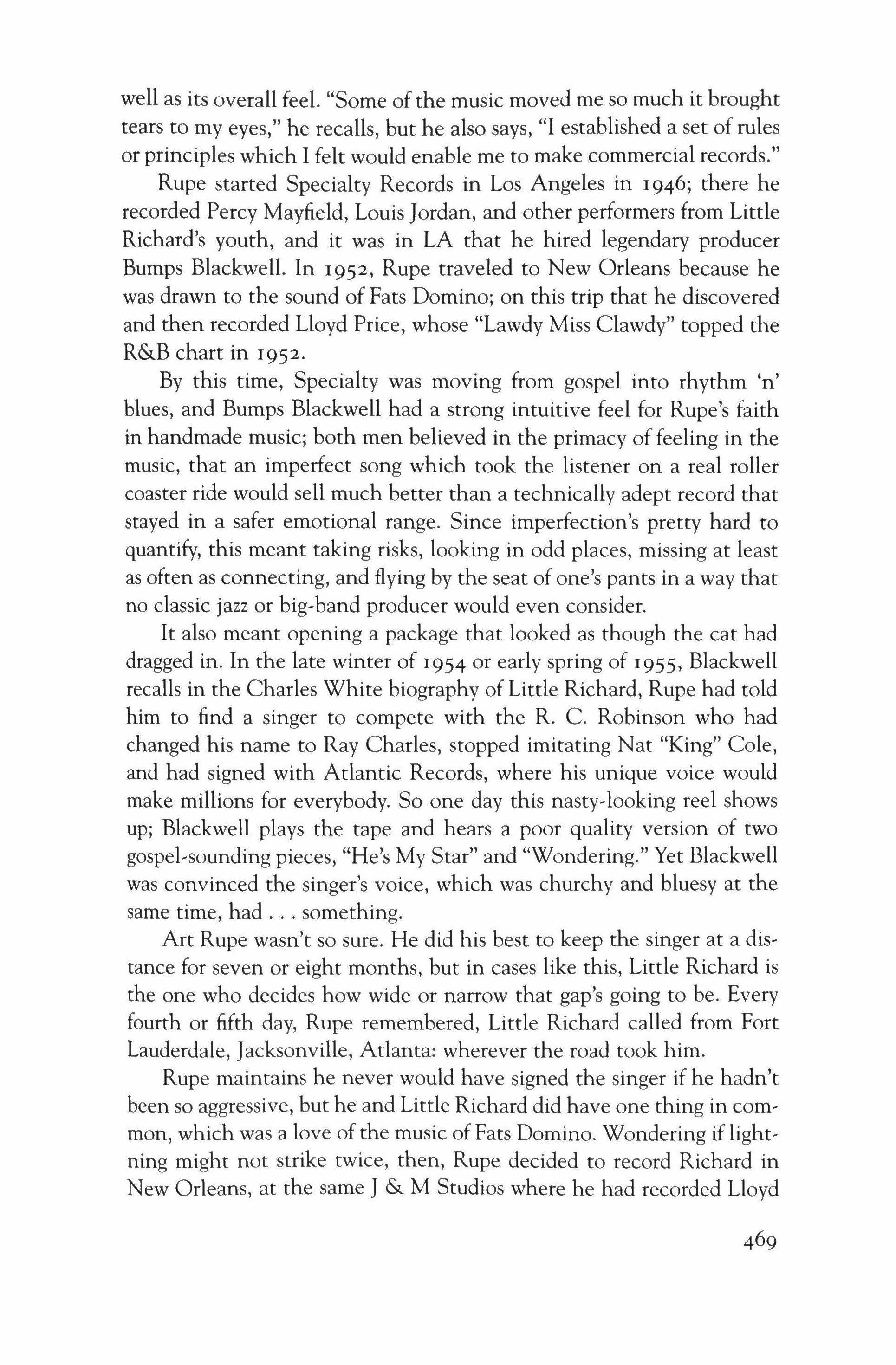 Price. The fit might have been even better than Rupe himself knew, because it was Price himself who had driven to Macon in his black and gold Cadillac and told Little Richard to send an audition tape to Specialty in Los Angeles.