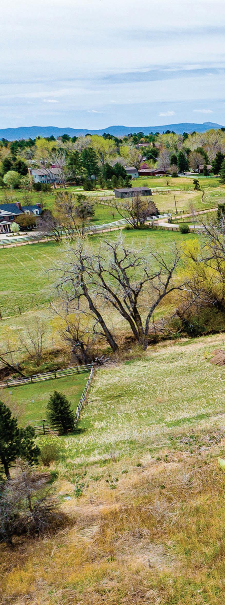This hidden gem of a neighborhood is zoned for a minimum of 2.5 acre lots, accessed via gravel roads, dotted with impressive architecture, horses and artists too. It is an easy stroll or trot to the wonderful Highline Canal Trail and just a quick drive to Trader Joes, restaurants, movies and shops.