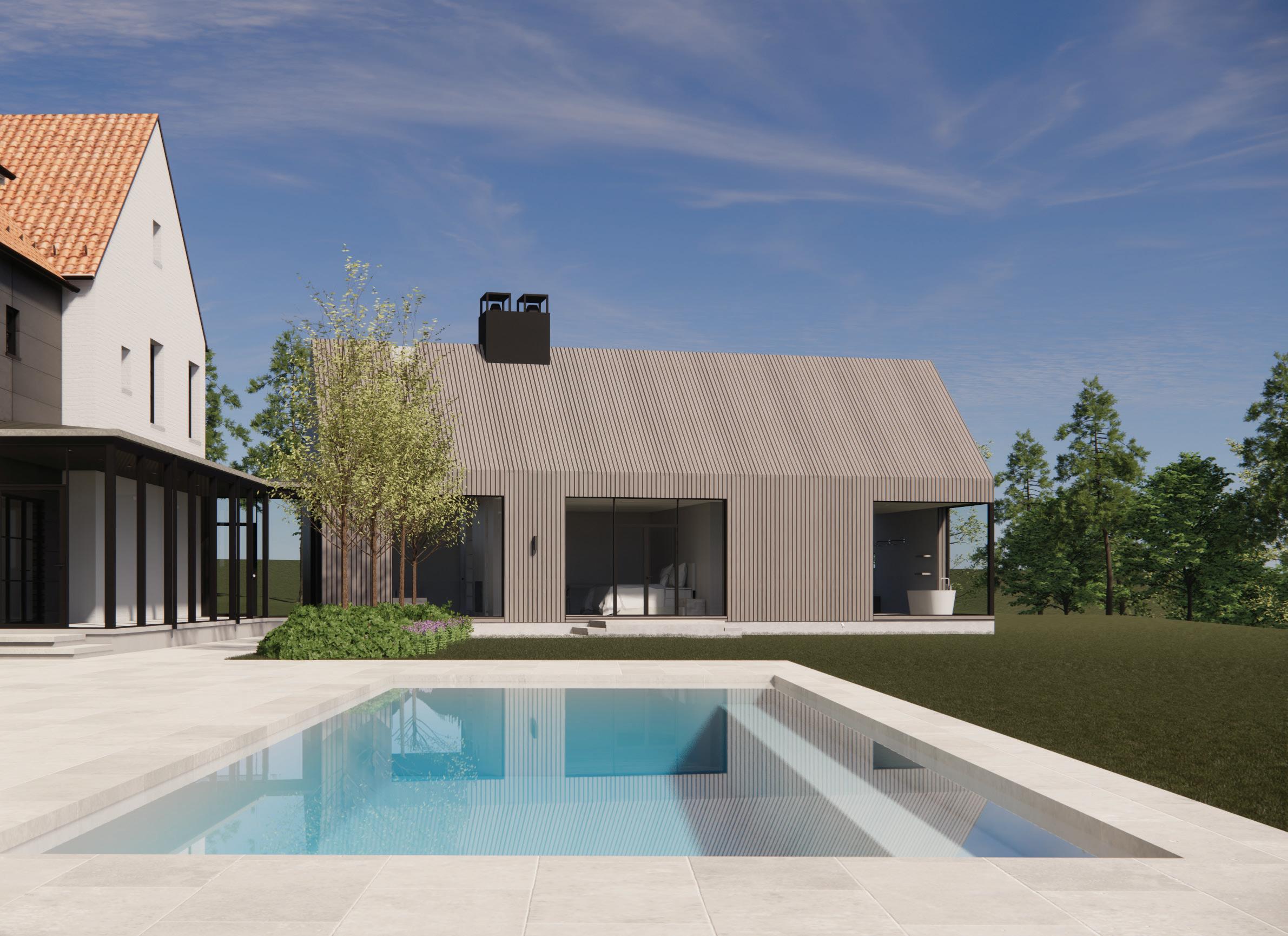 The topography of the building envelope is uniquely perfect for a home designed with a lower level that walks out to the pool, meadow and creek. Of course, the Buyer is free to design what they wish, however the Seller will share her Stamped Architectural plans, renders and inspiration for a Belgian contemporary home and guest house, designed by noted Houston firm Murphy Mears Architects. These plans have gone through full building development phases for permitting by Greenwood Village.