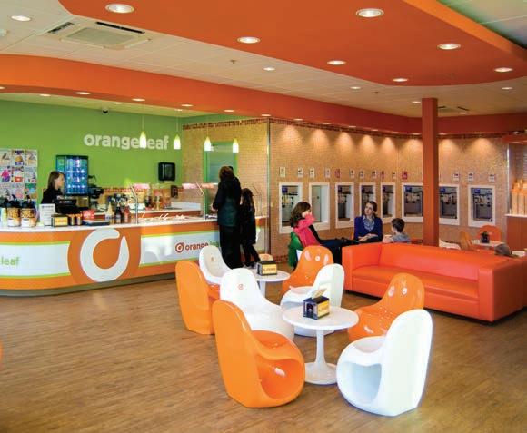 We just have to say, we LOVE the interior design of the new Orange Leaf Frozen Yogurt shop that recently opened in the Lamont Plaza Building beside Subway. From by the ounce concept seems to be working, even in the dead of winter. And those weird looking chairs are comfortable too. But don’t lounge around too long, or your yogurt will melt. (That’s OK – you can always get more.)