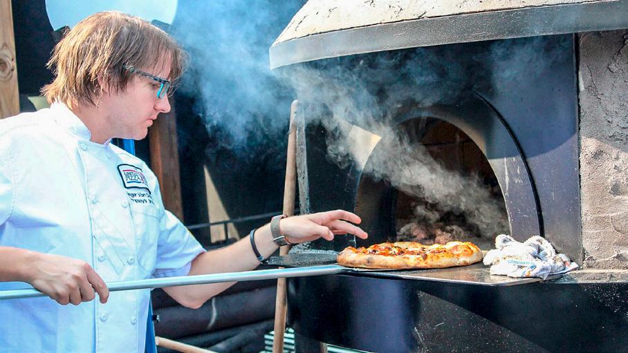 Executive chef, Sean Dempsey, prepares one of his specialty pizzas.