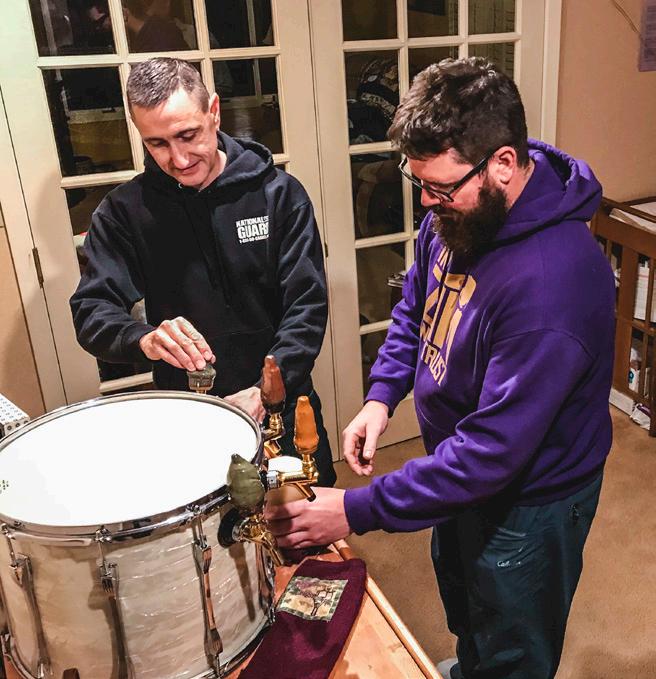 his colleagues like challenges and have found opportunities. For example, Keith likes “to look at the expensive equipment available and figure out how to make it for myself.” He uses an Igloo cooler to mash grain. Terry boils ingredients in a kettle from Runnings and ferments in a large plastic bucket. He also kegs most of his beer, but also likes the bottle capper a relative found for him in a garage sale. And the club percussionist, well he repurposed a snare drum into a beer tap.