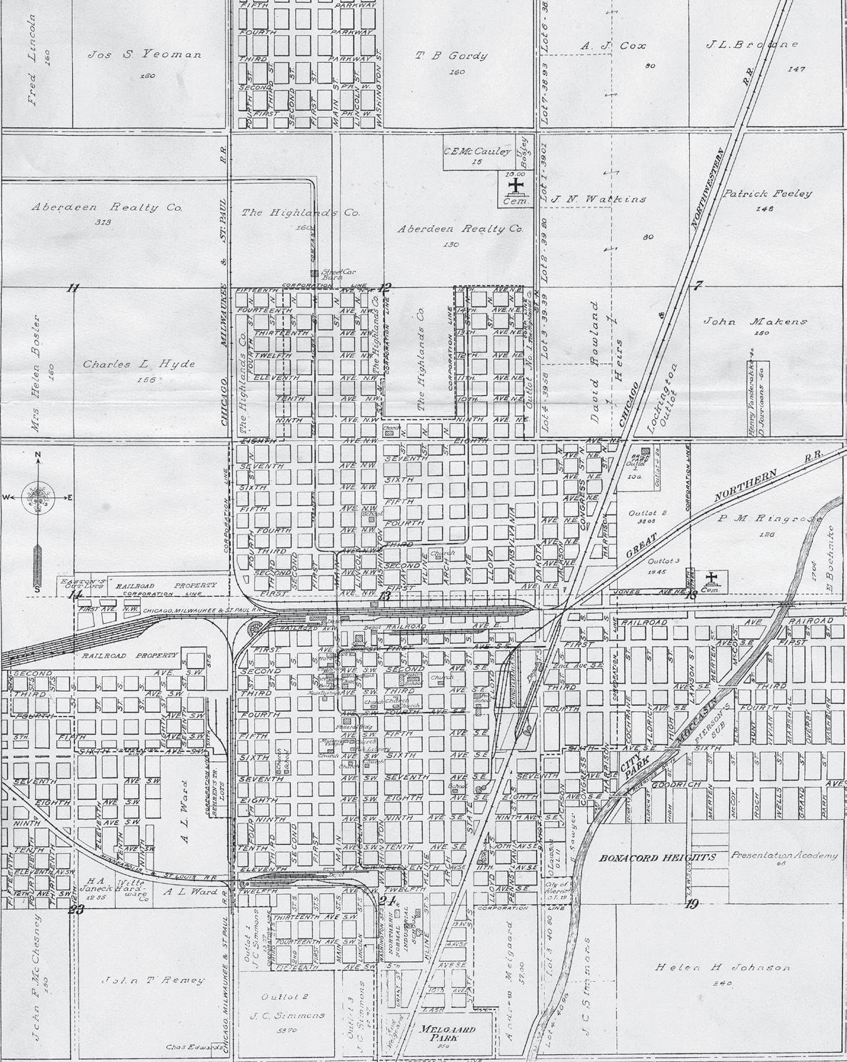 Howard and Hedger then conceived of their own residential development for Aberdeen and plotted a new subdivision up north. It was built on higher ground than downtown, a bit out in the country away from the smoke of coal and trains, and had wide streets with a median going down the center. They developed the Highlands District, straight north of downtown Aberdeen. It was to be a bit exclusive, with one house per quarter block. Room to breathe, as they described it. And to kick things off, Howard and Hedger each built similar homes on Main Street, on opposite sides of 12th Avenue. The homes were designed by J.W. Henry and still stand today.