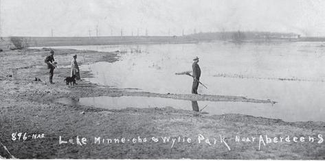 Wylie Park was originally an area of land purchased by the City of Aberdeen in August of 1910. The park opened July 4, 1911. The Aberdeen Railway Company actually donated adjacent land suitable for a lake. An Aberdeen Weekly News article from August 17, 1911 states the Aberdeen Park board dug out the lake – a 25-acre area – and the streetcar company drilled a three-inch wide well to an underground artesian water supply. The lake was named Minne-Eho, and according to the article, is a Sioux term meaning wonderful lake. Aberdeen Railway built a driveway around the lake and planned to build track around it as well. The lake was dug to a depth of five feet with several pockets were dug deeper to benefit fish. McQuillen family legend states that A.F. McQuillen dumped the first fish into the lake from a cream can he had carried on the streetcar to the lake. The article states that Wylie Park, with its new lake, would become a favorite resort for Aberdeen. How true!