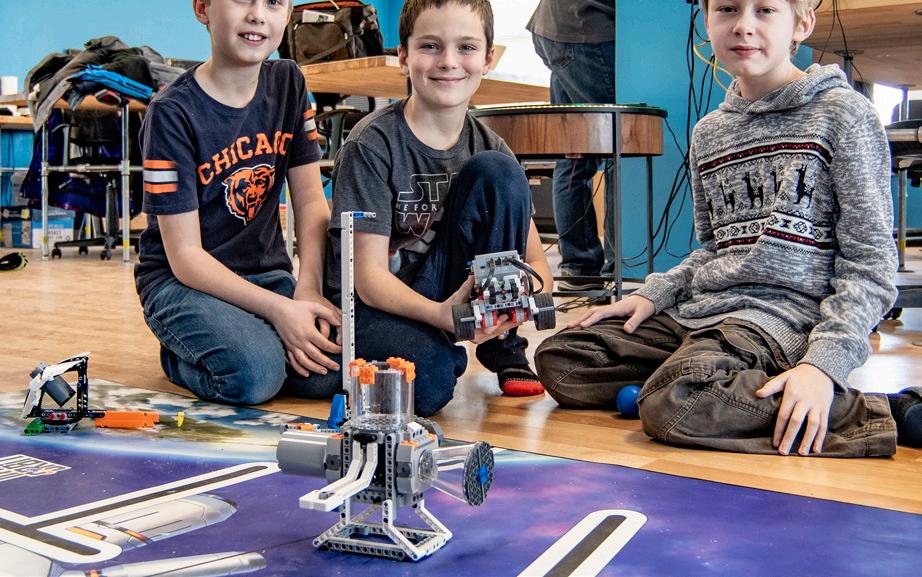 Graham Scott, Joe Cogley, and Coen Vogel build LEGO missions at a CREATE LEGO League class.