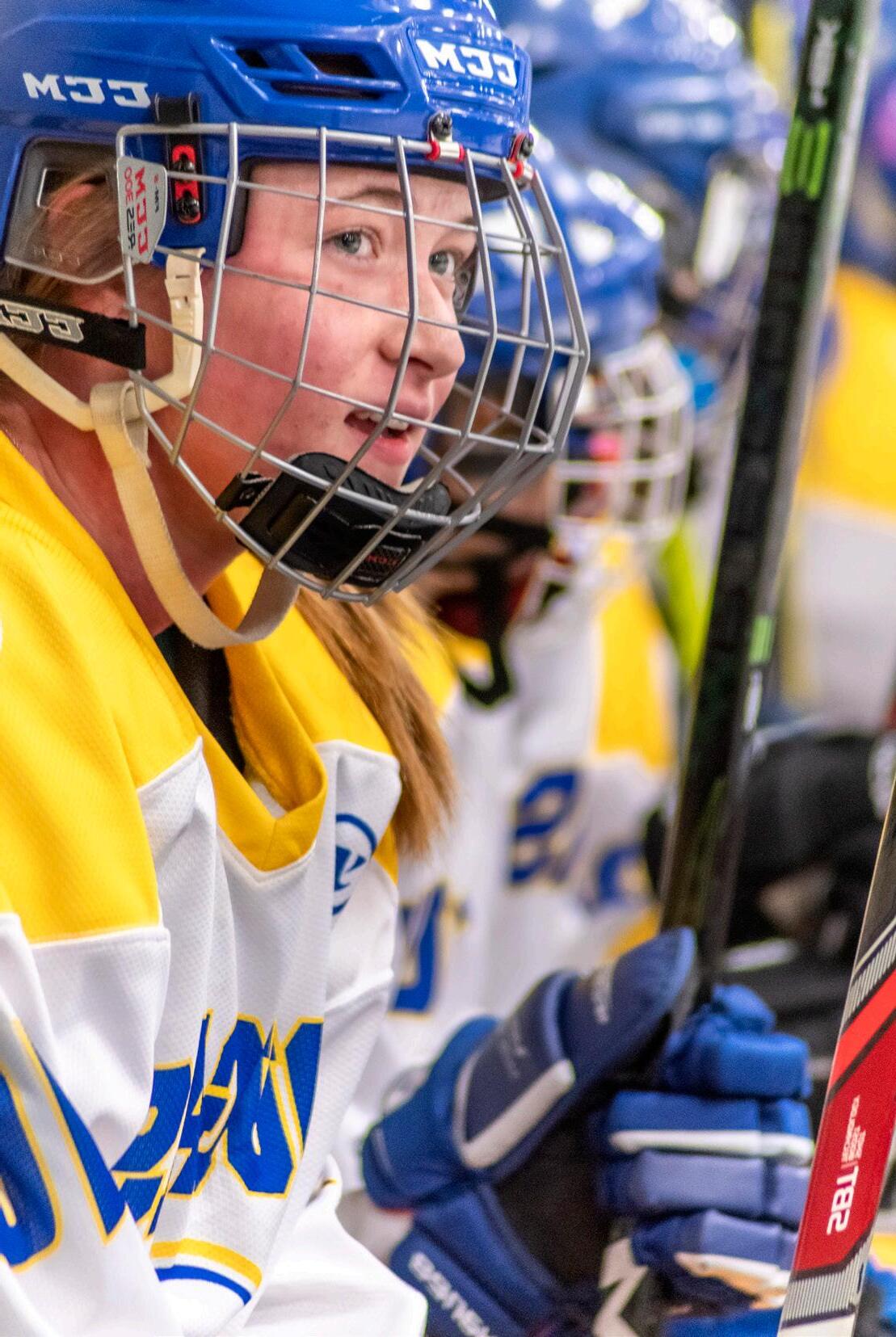 Pictured is Hailey Holland, a senior at Aberdeen Central, multi-sport athlete, and forward for the Lady Cougars hockey team. Aberdeen has one of the largest and most successful girls hockey programs in the state. Hailey and her teammates make it look easy, but it’s their strong team bond, coupled with years of practice, that allows them to take the ice so confidently. Photo by Troy McQuillen.