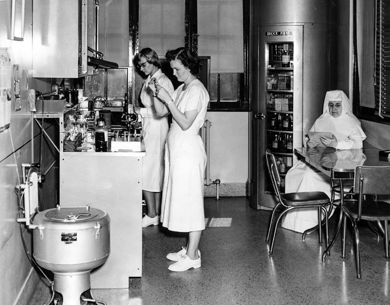 An early lab scene from 1958. Presentation Sisters filled many administrative roles in the early days of the hospital. Their involvement eventually evolved into that of governance; a role they still serve to this day.