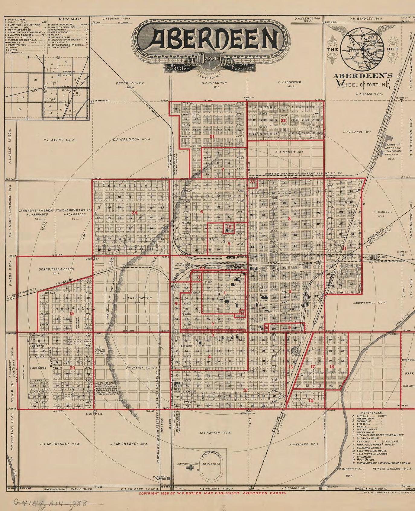 If you look on the 1888 map, you see an unplatted quarter section of land said to be owned by J.R. and L.C. Dayton, two brothers who took out tree claims very early on. Today, this area would be east of 12th Street up to 5th Street, north of 6th Avenue. After West Hill’s creation, this area started attracting squatters who thought the land was officially unclaimed. In 1890 it seems the Daytons tree claim was dismissed or canceled. Then John McChesney (see main story), claimed the quarter section as his own only to have that rejected as well. At the height of this confusion, nearly 60 people had staked claims in what became known as Squatterville, and some where actually living there in makeshift accommodations. The City of Aberdeen also claimed the area was rightfully theirs. A commissioner from the Department of the Interior had to come to Aberdeen to sort the mess out. His decision was to side with the squatters. Each individual claimant (less than 10 by this time) would have the chance to purchase their squatted parcels. Since the area was within the city of Aberdeen, it became part of the town and labeled “West Aberdeen.” The story actually went on for five years, however, this is a very truncated version of the drama.