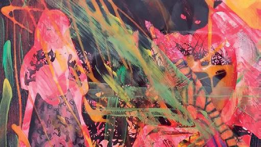 Rie Vøge-Jensen begyndte at lave collager af gamle citater, hun havde gemt i en kasse, efter hendes eks-kæreste begik selvmord i april 2014. Det var en måde at bearbejde sorgen på. Derefter tog det fart og udviklede sig med akrylmaling og flere runde værker. Rie Vøge-Jensen har udstillet i mange kirker og på biblioteker, og nu er det blevet vores tur. Hun udstiller sine farverige værker hen over efteråret.