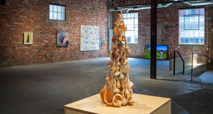 to the act of seeing. Like Jewish ritual, Lucier’s score, asks us to slow down, notice, and respond with intention. In Jewish tradition, kavanah refers to the intentionality that imbues ritual acts with meaning. It is not the action alone that matters, but the spirit and mindful focus that matters, ensuring that prayer and mitzvot are performed with purpose not just habit. Across painting, sculpture, photography, and time-based media, Spatial Poems features artists whose works don’t demand attention but invite it—subtly, insistently. These pieces do not present meaning; they ask for your participation in discovering it. As in Jewish ritual, where prayer is incomplete without mindful intention, the works in this exhibition only fully come into being through an engaged viewer. This is not spectacle—it is sacred attention. A quiet, radical proposal where meaning is constructed not through force or clarity, but through the depth of one’s presence. Like reciting a blessing over bread, placing a mezuzah at our doorpost, marking a first with the shehecheyanu, the viewer’s role becomes one of both reverence and co-creation. In a way, the sacred hides in plain sight and emerges when we’re fully present.