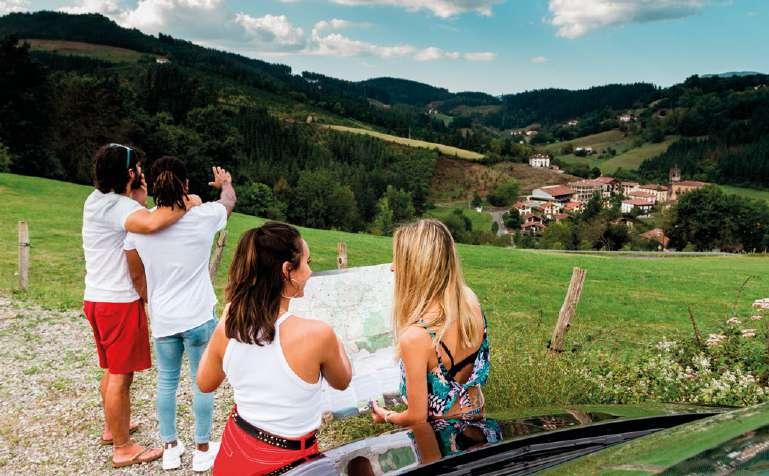 Wir fahren durch ein Baskenland der Wiesen, Buchenwälder und Apfelweinstuben. Manchmal fahren wir unter dem wachsamen Auge des Berges Txindoki und dann wieder im Schatten mittelalterlicher Dörfer mit jahrhundertealten Märkten.