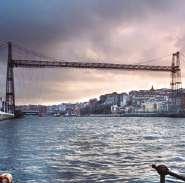 Das Guggenheim-Museum Bilbao steht dort, wo sich einst Werften, Lagerhallen und Laderampen befanden. Über die BI711 und mit der Ría des Flusses Nervión auf der linken Seite erreichen wir die Bizkaya-Brücke, eine Hängebrücke, die Portugalete mit Getxo verbindet.