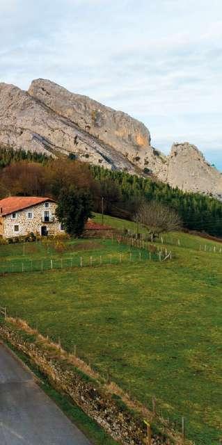 über eine mittelalterliche Brücke zu erreichen. Nach dem Besuch der Kirche San Severino mit ihrer asymmetrischen Fassade und schönen gotischen Fenstern, nehmen wir die BI-630, um uns tiefer in das Karrantza-Tal zu begeben. In Ambasaguas befindet sich die Touristeninformation und wenige Kilometer weiter müssen wir rechts auf die BI-4679 abbiegen, die uns zur Ortschaft Ranero bringt. Wir fahren »