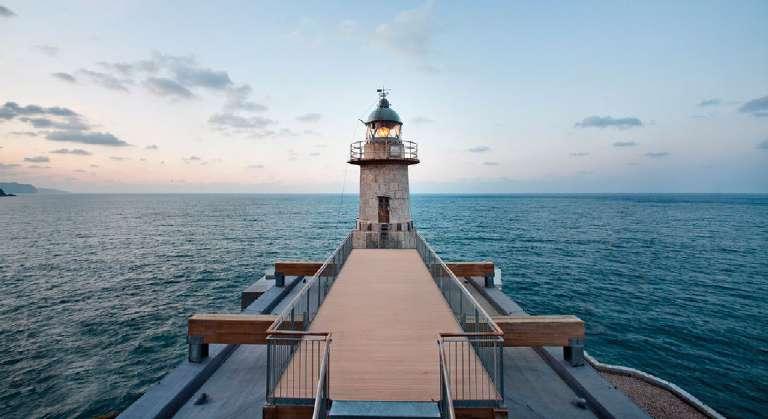 eine durch eine Brücke mit dem Land verbundene Insel, die von einer einsamen Kapelle gekrönt wird, die man nach Erklimmen von 241 Stufen erreicht und mit einem 360-Grad-Panoramablick auf die Küste belohnt wird.