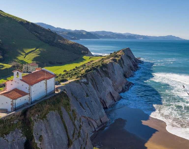 Eine Route am Golf von Biskaya entlang beeindruckender Klippen, Surferstrände, traditioneller Fischerdörfer und Restaurants, in denen man die Köstlichkeiten des Meeres genießen kann.