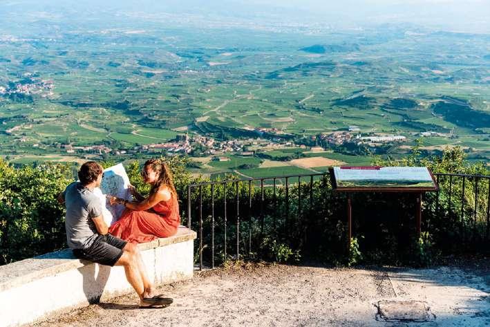 Hechicera, El Campillar und Lapuebla de Labarca mit Barock- und Renaissance-Fassaden sind Ortschaften, die wir auf dem Weg nach Elciego hinter uns lassen, wo uns ein imposanter Titanbau neben einer Barockkirche überrascht. Wir haben die Rioja Alavesa mit ihrem Meer von Weinbergen erreicht, die sich am Fuße der Sierra de Cantabria und mit Laguardia als Hauptstadt erstreckt. •