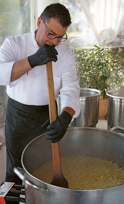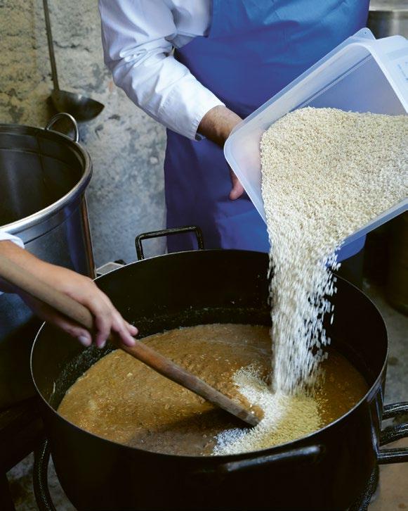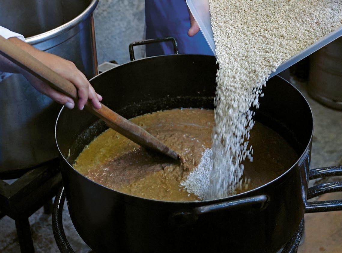 Skradinski rižot, a ne rižoto. Jelo je to koje se kuha satima, a priprema danima. Znanje o njemu prenosi se generacijski, kuha se u teći, miješa bez žurbe. Nema prečaca, ni kompromisa: samo kapula, meso i riža u jednakim omjerima i puno truda i dobre volje. Više od recepta, skradinski rižot je filozofija posvećenosti. I ne zaboravimo, pravi skradinski rižot u ponudi restorana može biti samo povremeno. str. 98