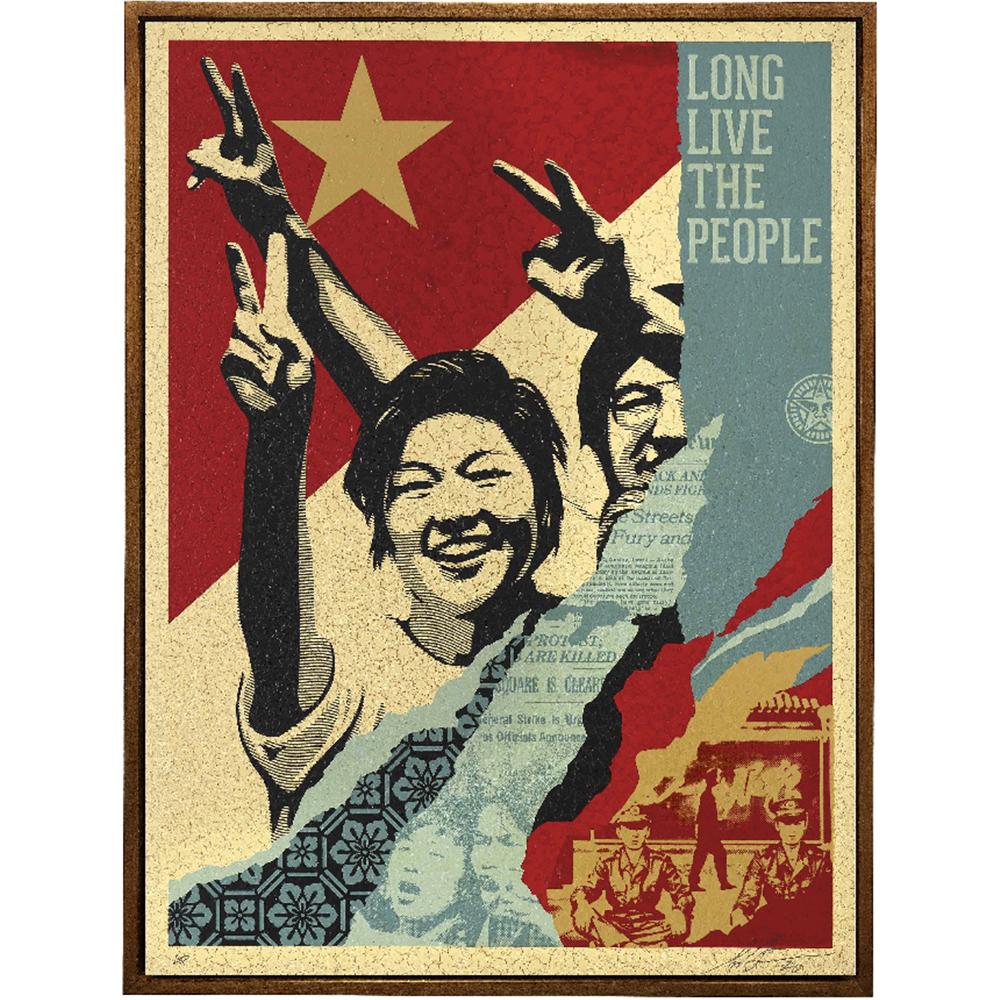 Shepard Fairey Long Live the People, 2020 silkscreen on wood panel 28 x 24" framed $3500 framed
